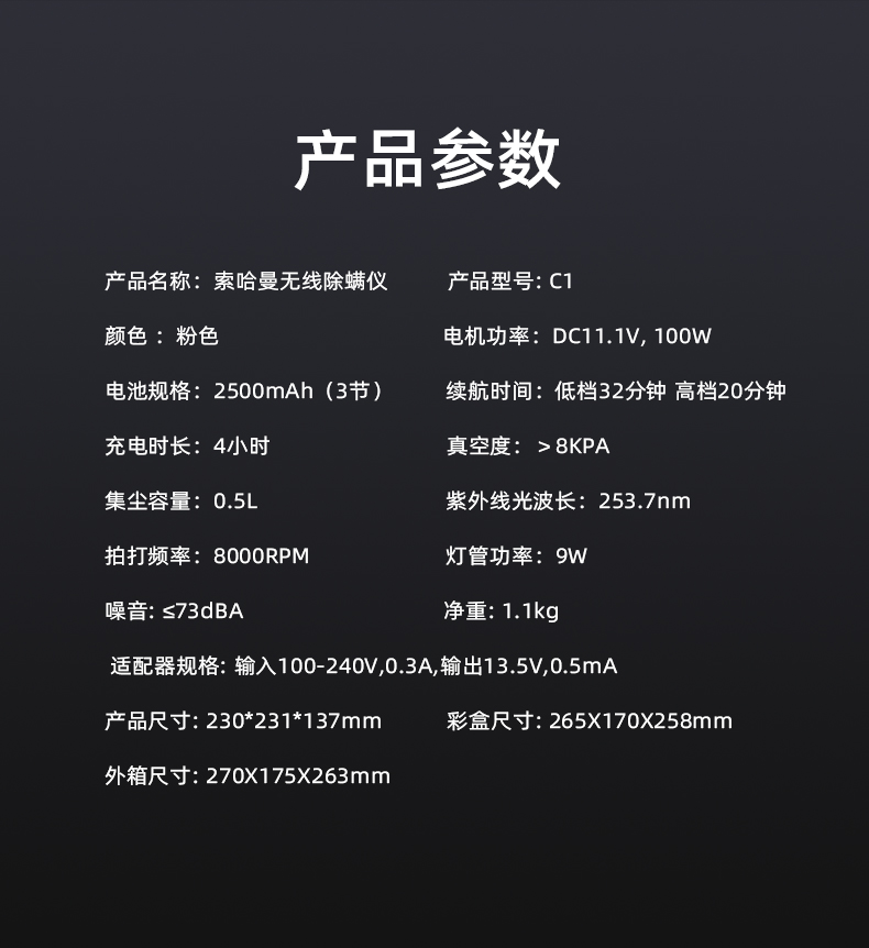 🎁索哈曼SOHOMAN 无线除螨仪C1