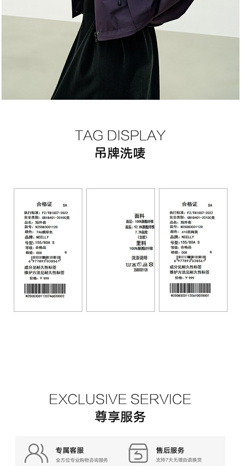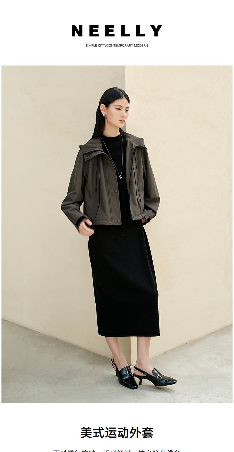 NEELLY纳俪商场同款秋季新款美式复古短外套女简约松弛通勤上衣N25083C01120