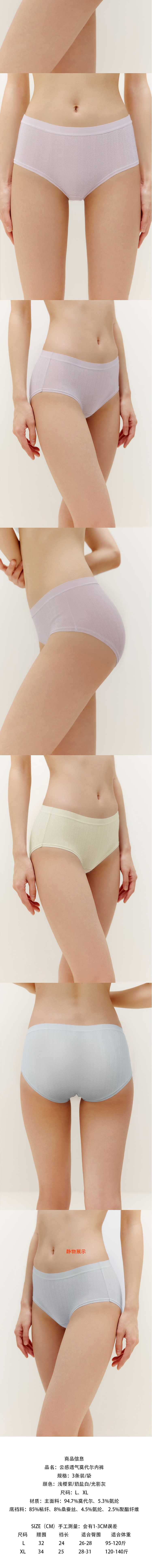 【3条装】 40S亲肤云感透气莫代尔内裤 细腻舒适 轻薄透气 中腰版型 立体包臀