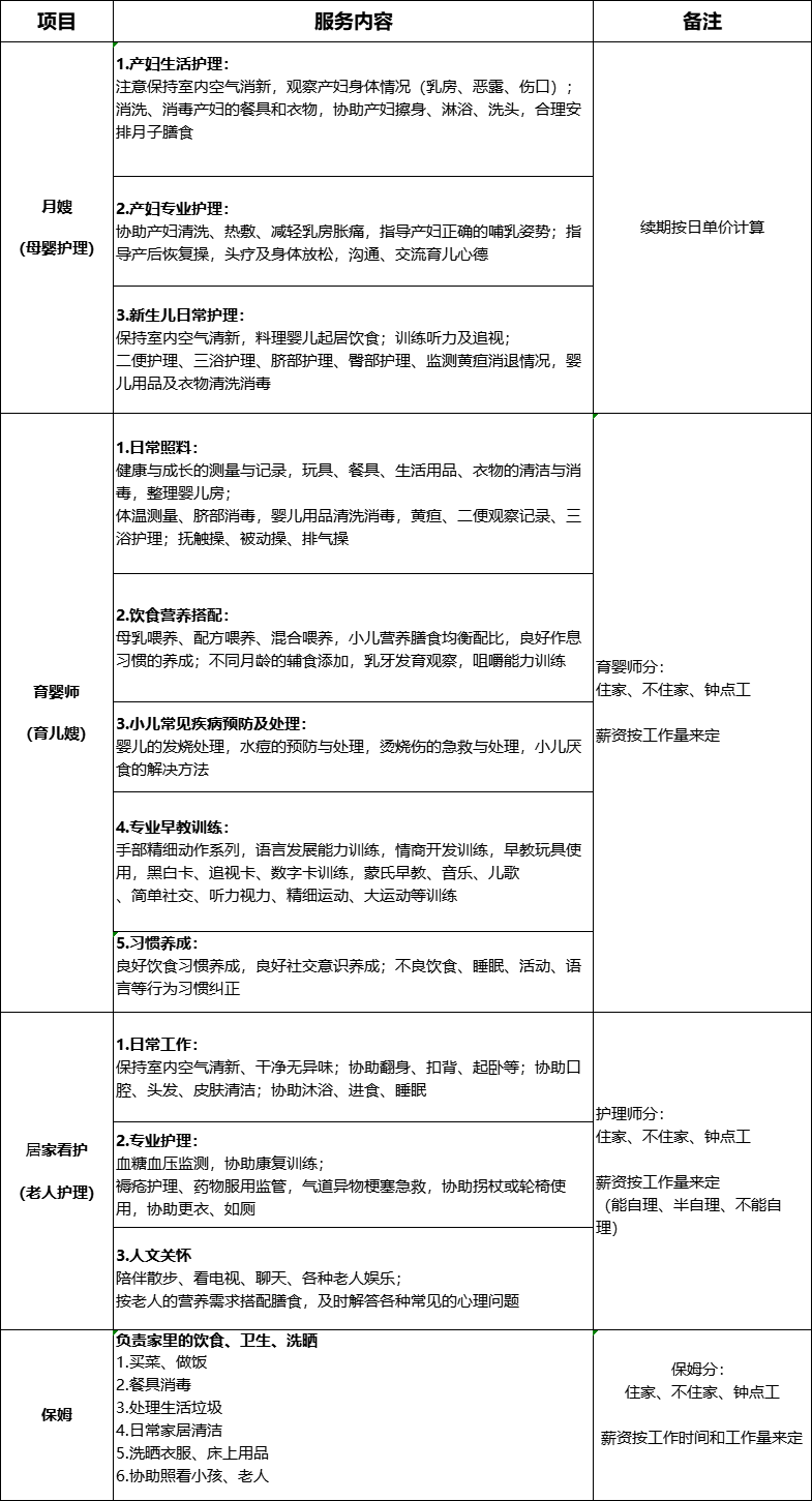 1、本服务仅限用于保姆/月嫂/育婴师/陪护服务;