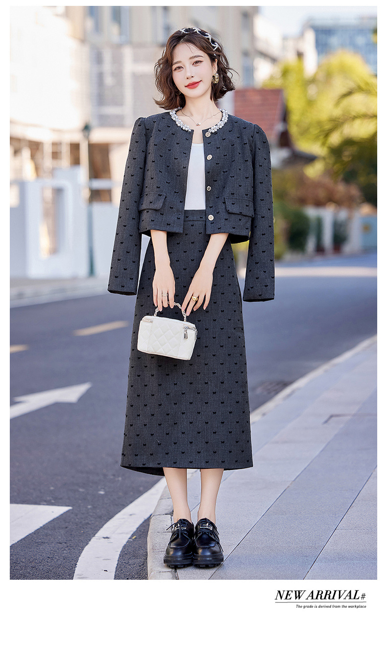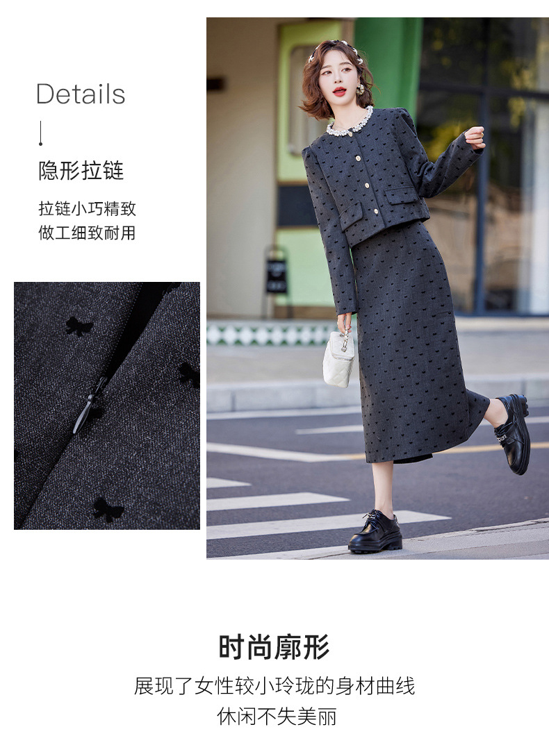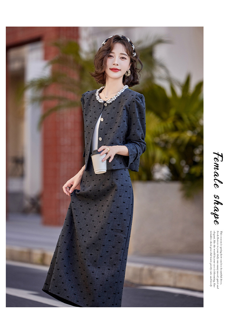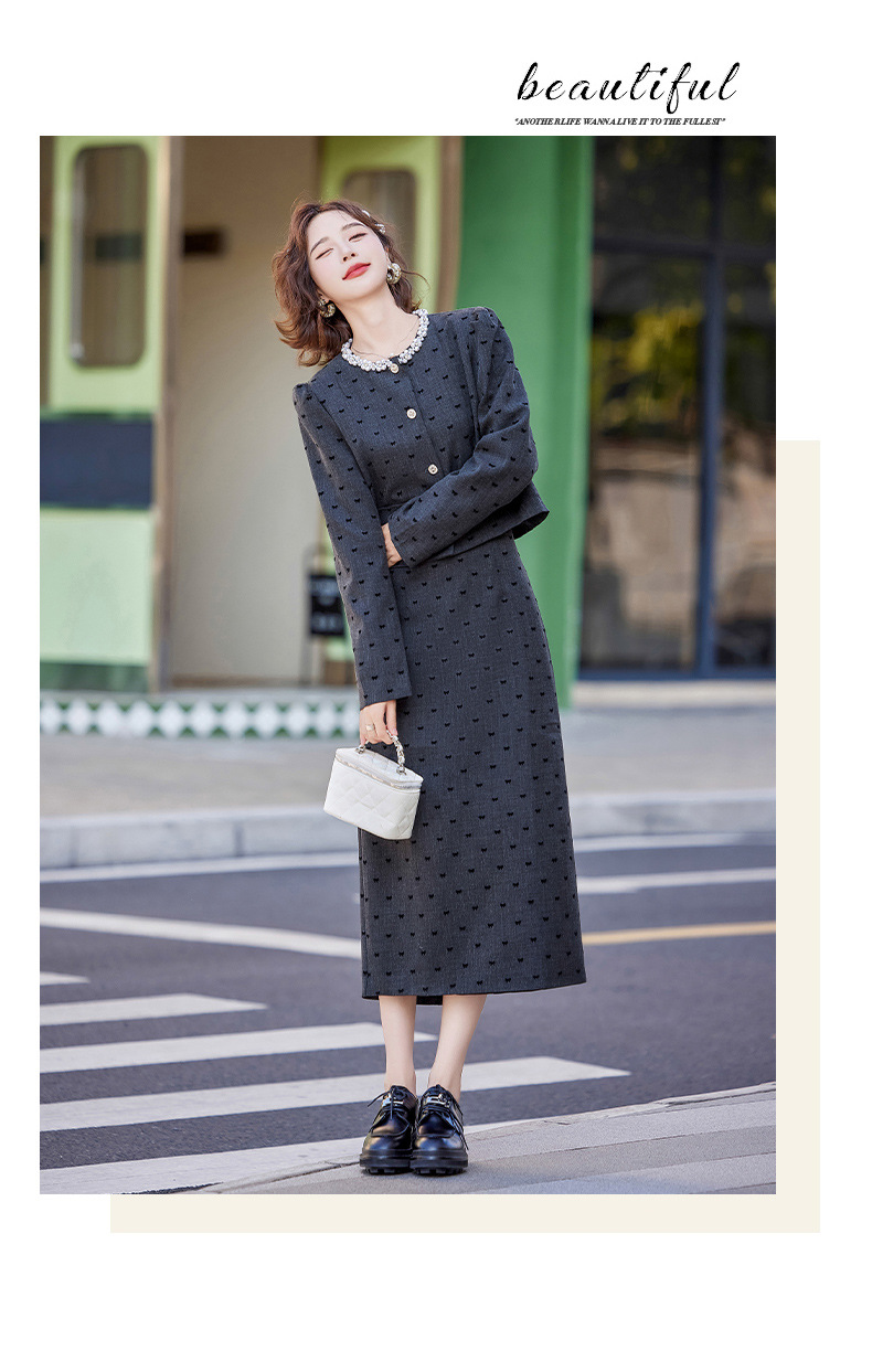 2025秋法式小香手工钉珠套装长裙气质两件套HR-SSFB2958