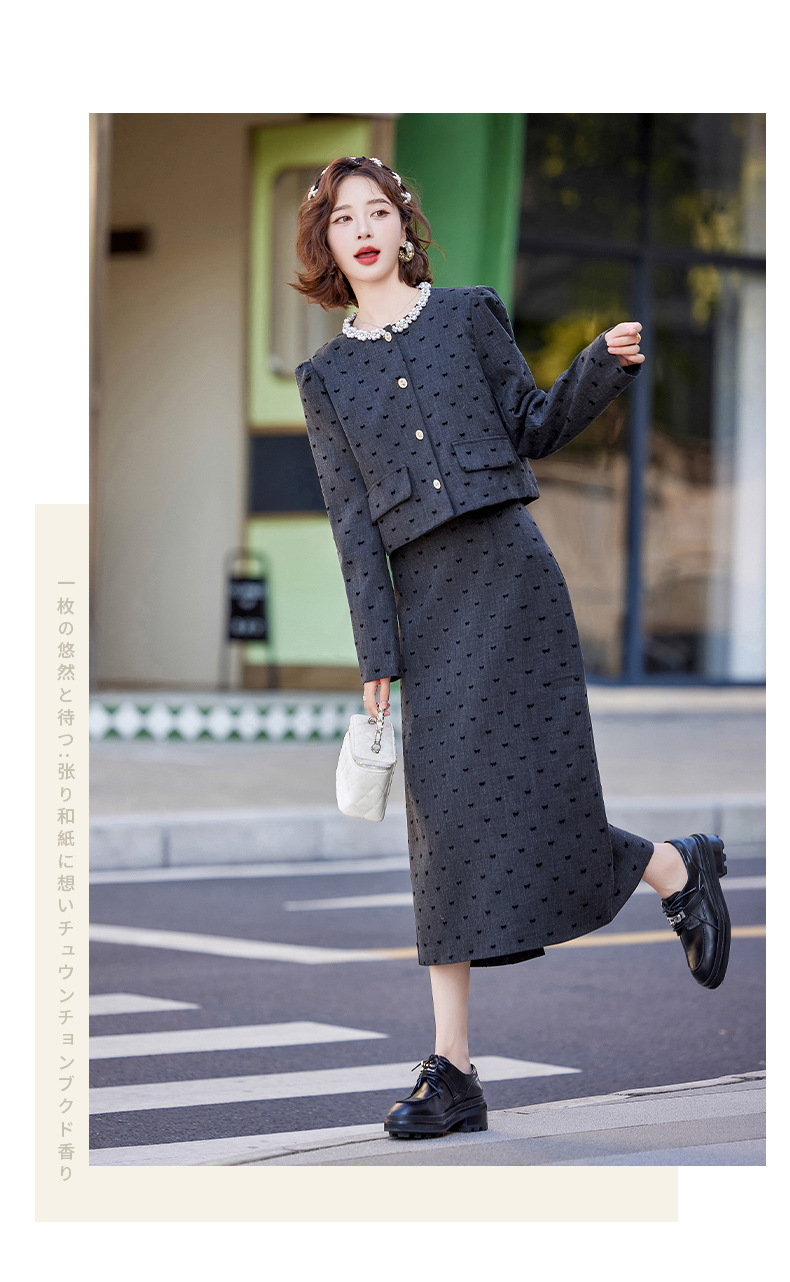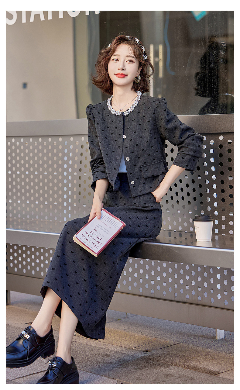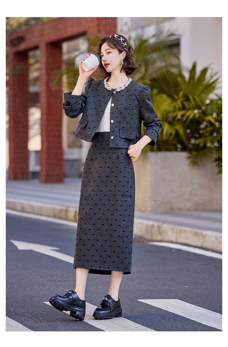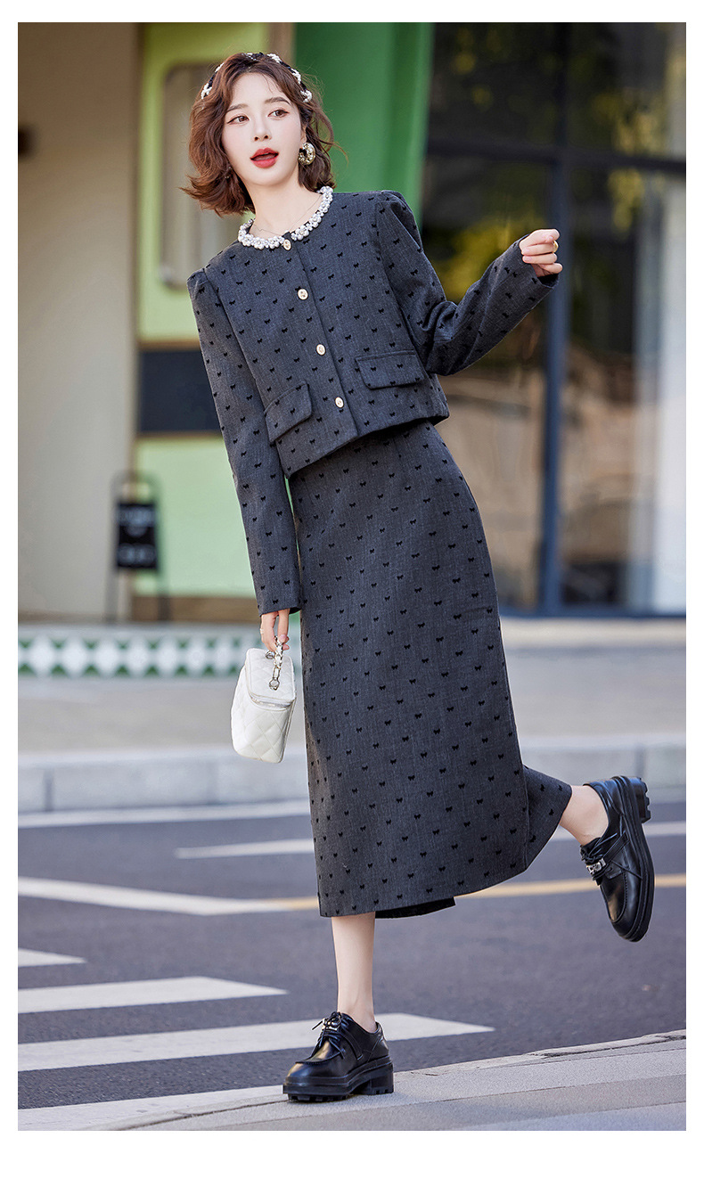 2025秋法式小香手工钉珠套装长裙气质两件套HR-SSFB2958