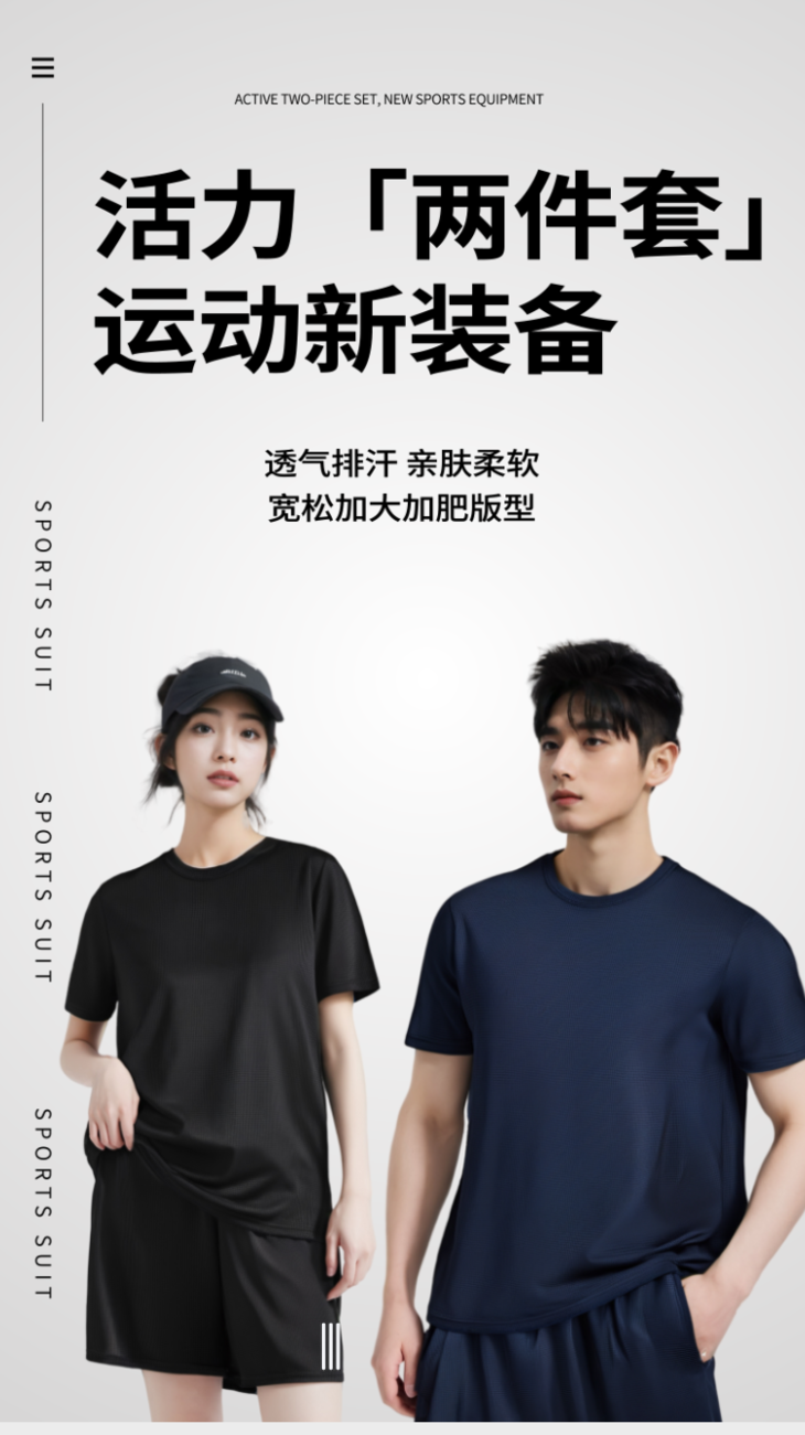 2025夏季新款 情侣款运动套装 速干轻薄 凉感百搭 上衣+下衣套装