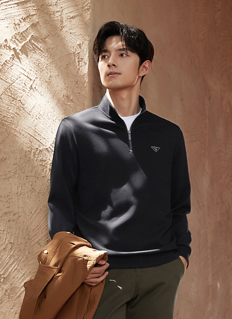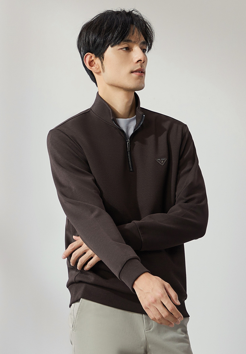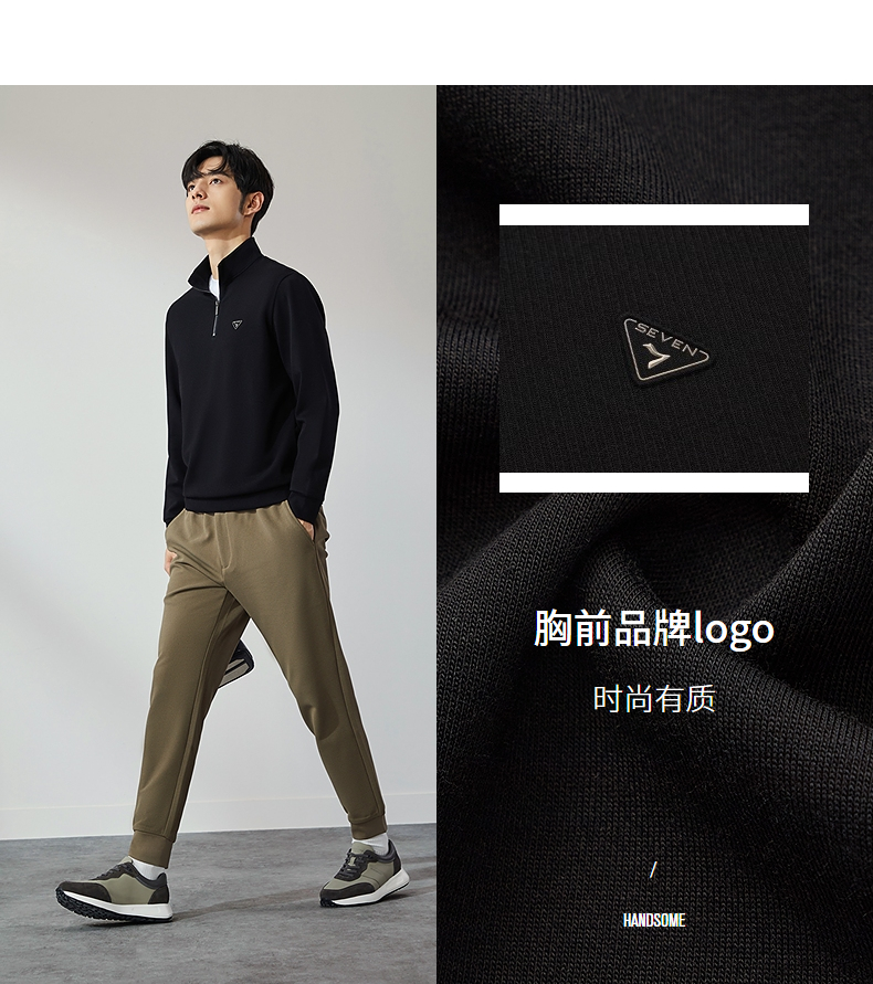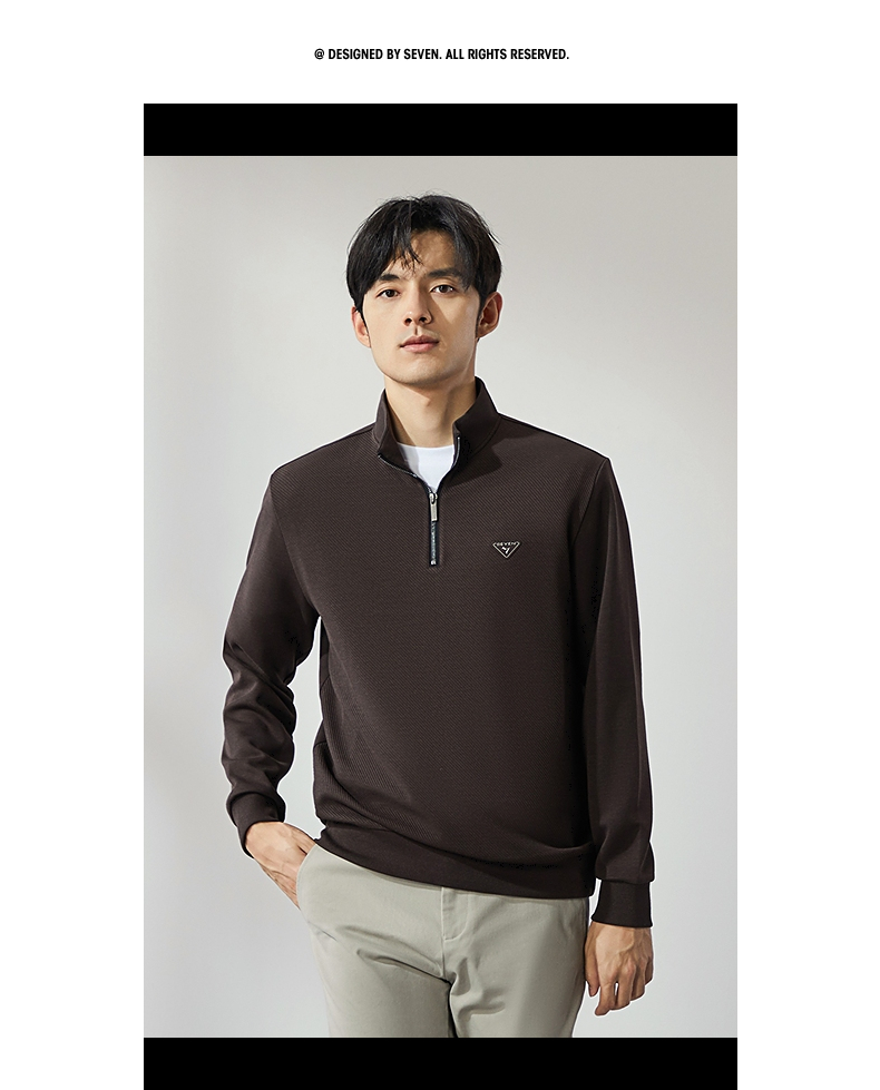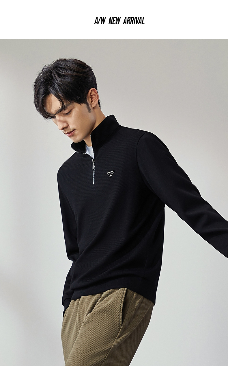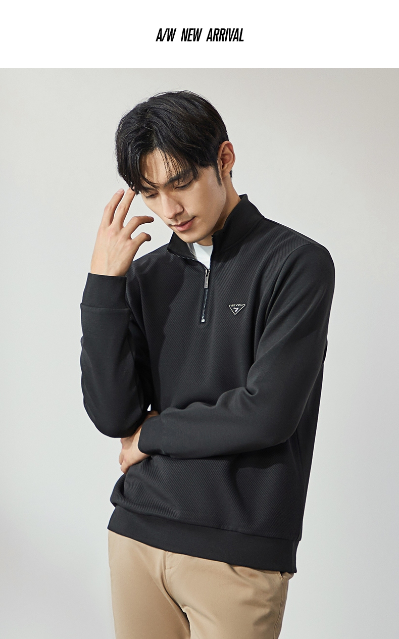 柒牌半拉链卫衣男士2024秋季新款商务百搭含莫代尔立领空气层上衣 127W70300
