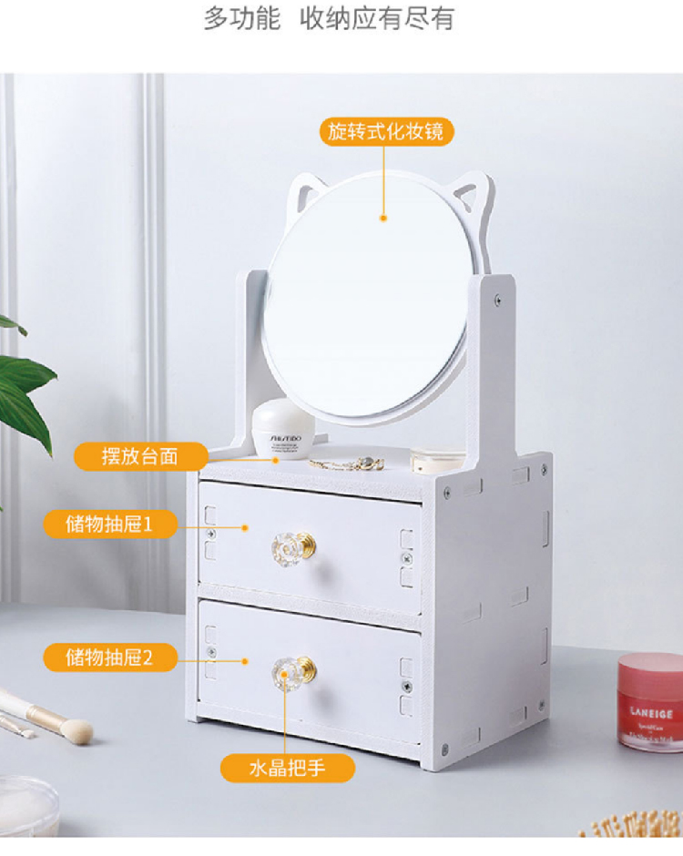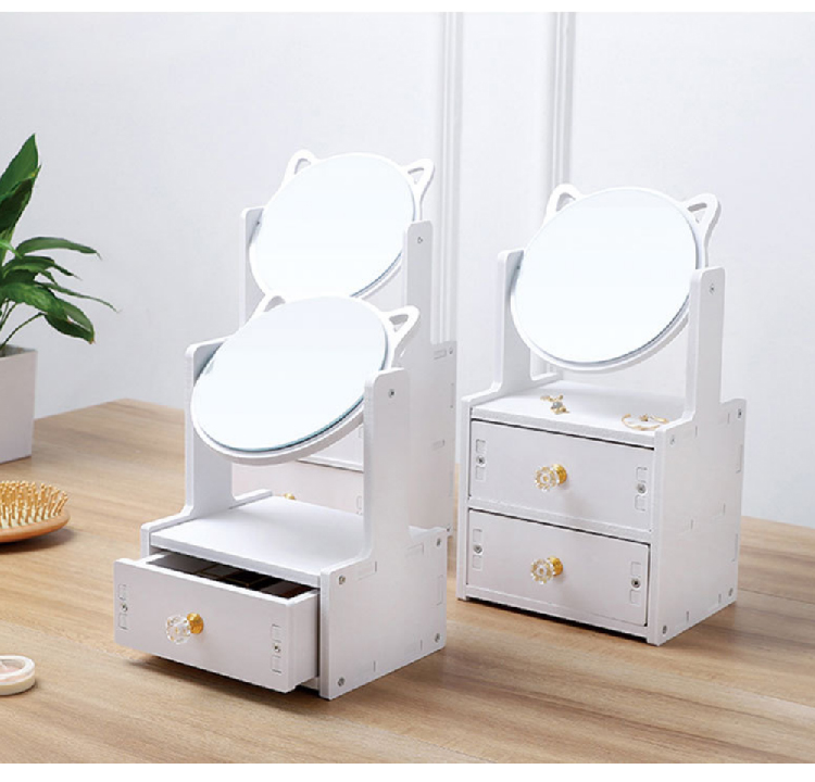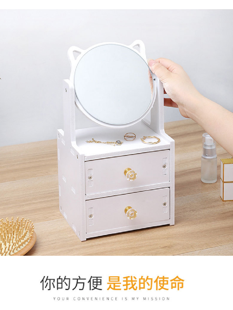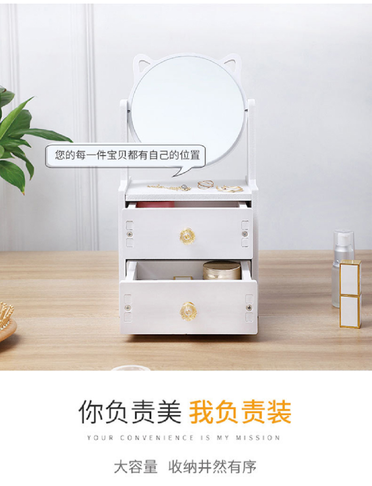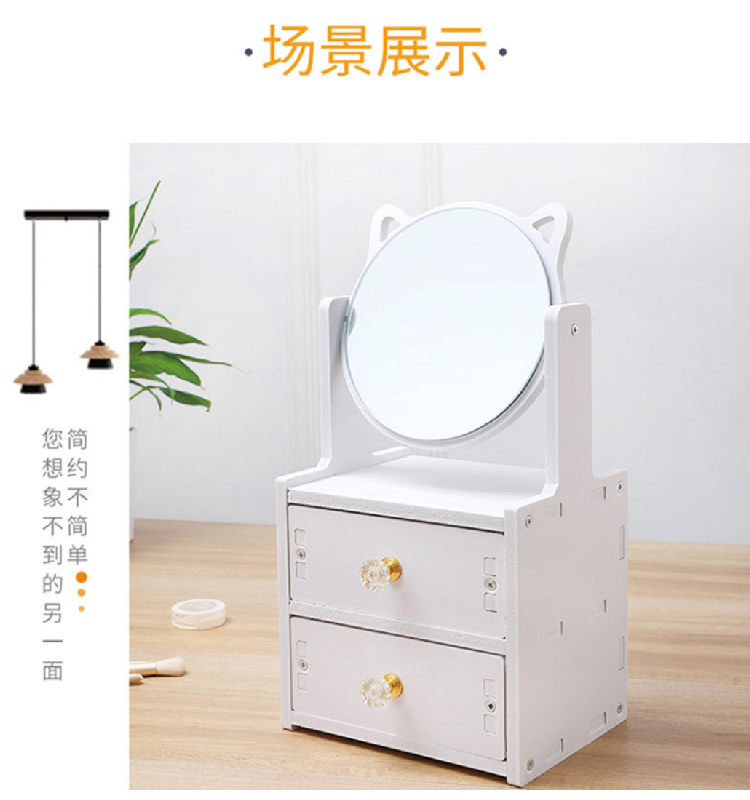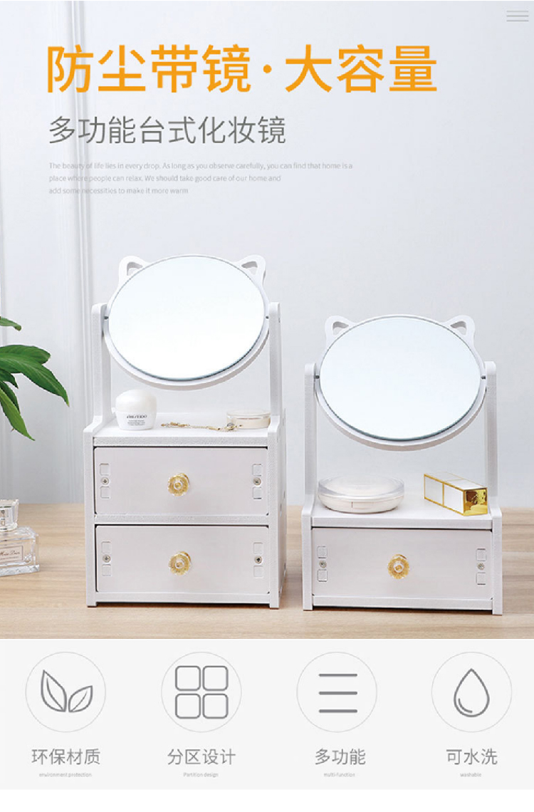 【台式抽屉化妆镜】大号带镜子桌面梳妆镜 便携收纳化妆盒置物架