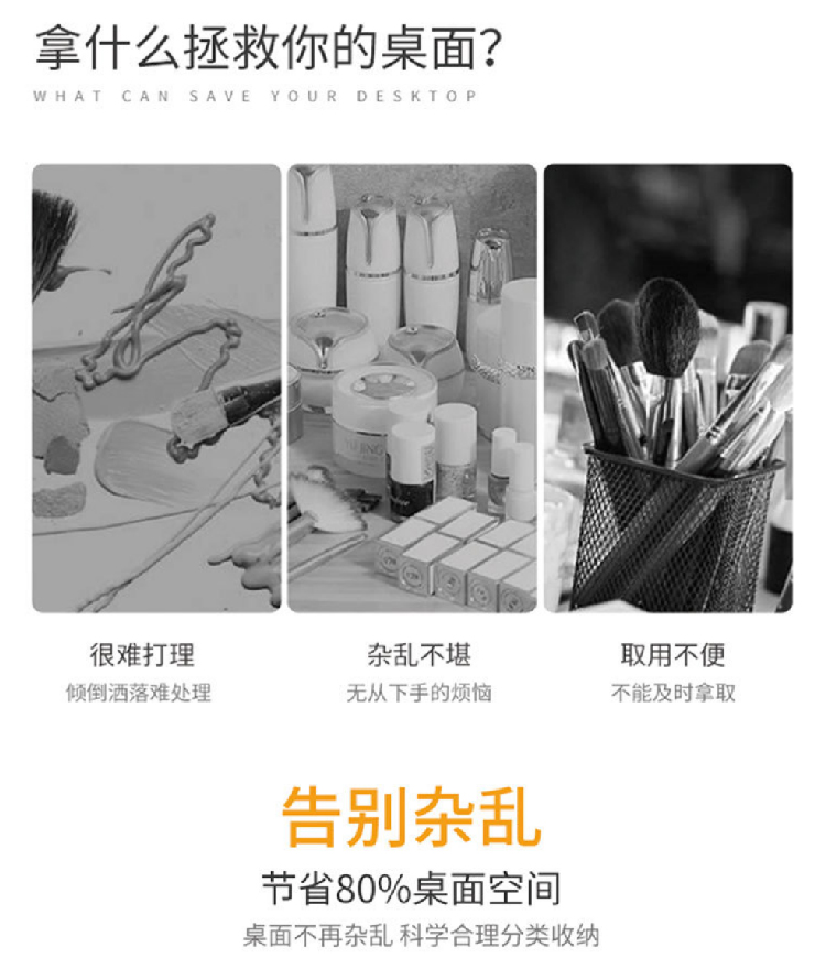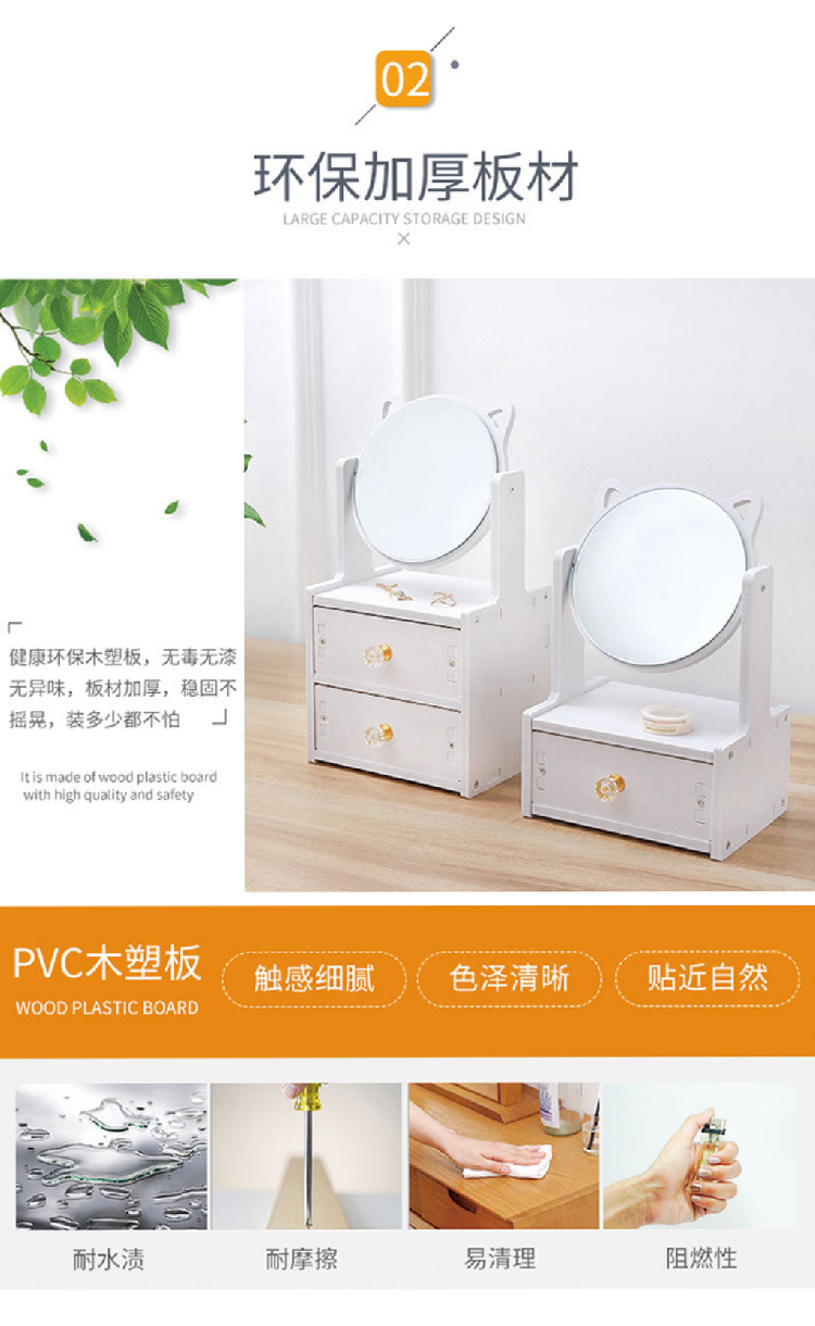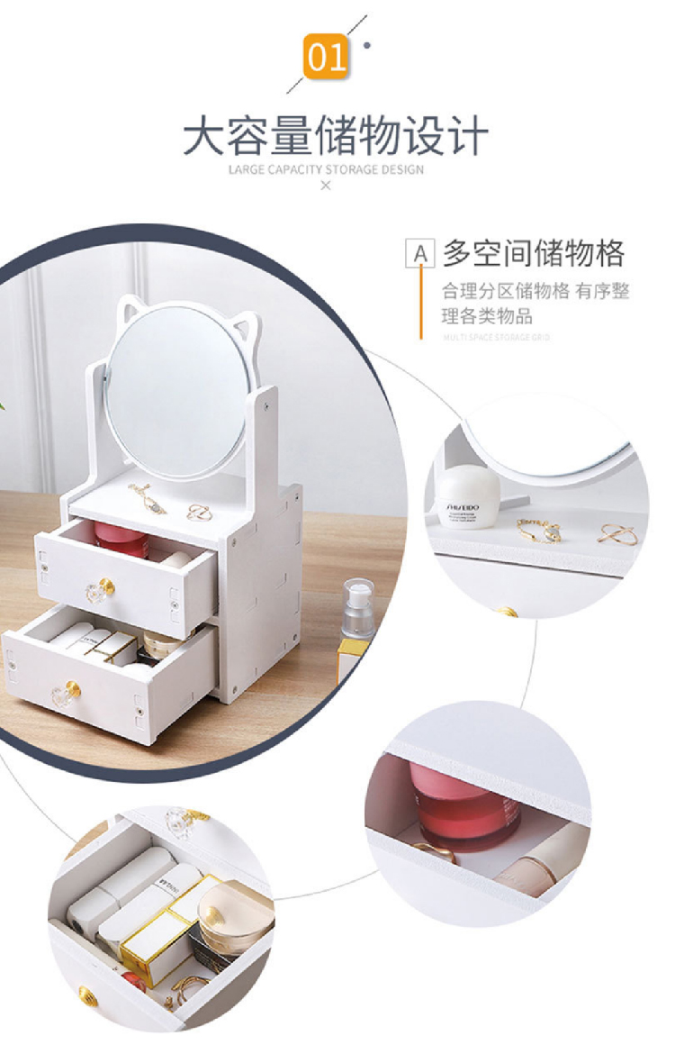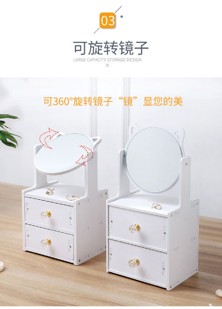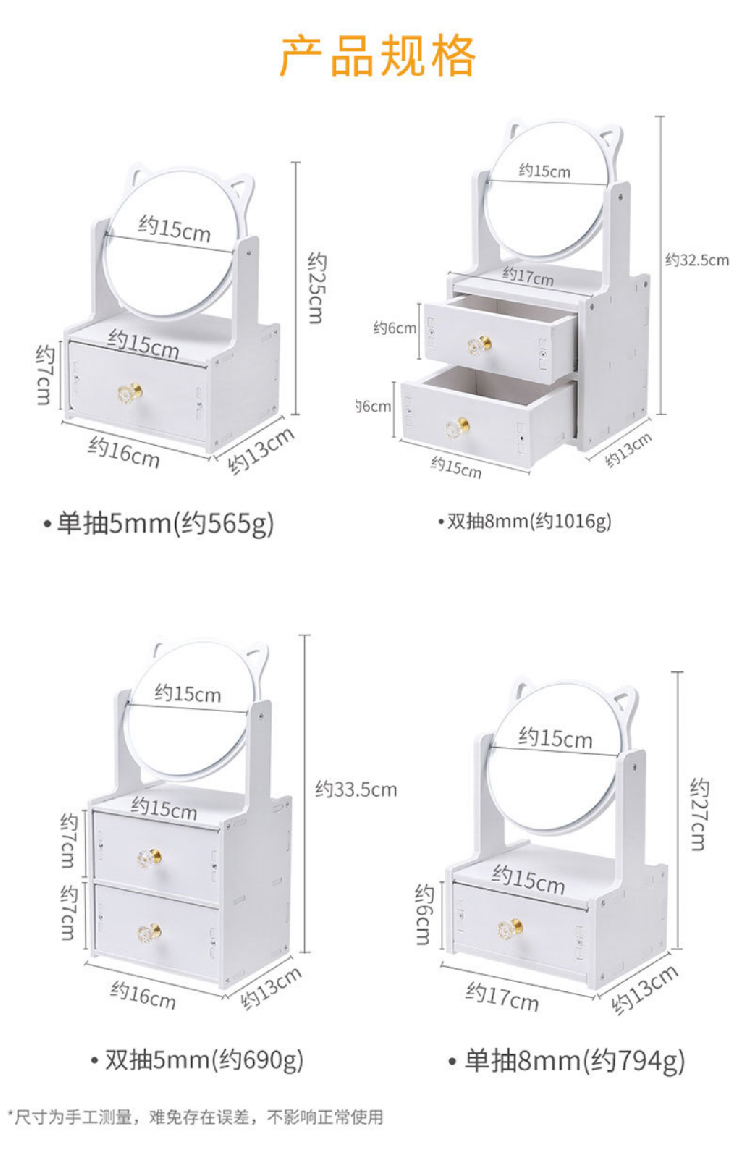 【台式抽屉化妆镜】大号带镜子桌面梳妆镜 便携收纳化妆盒置物架