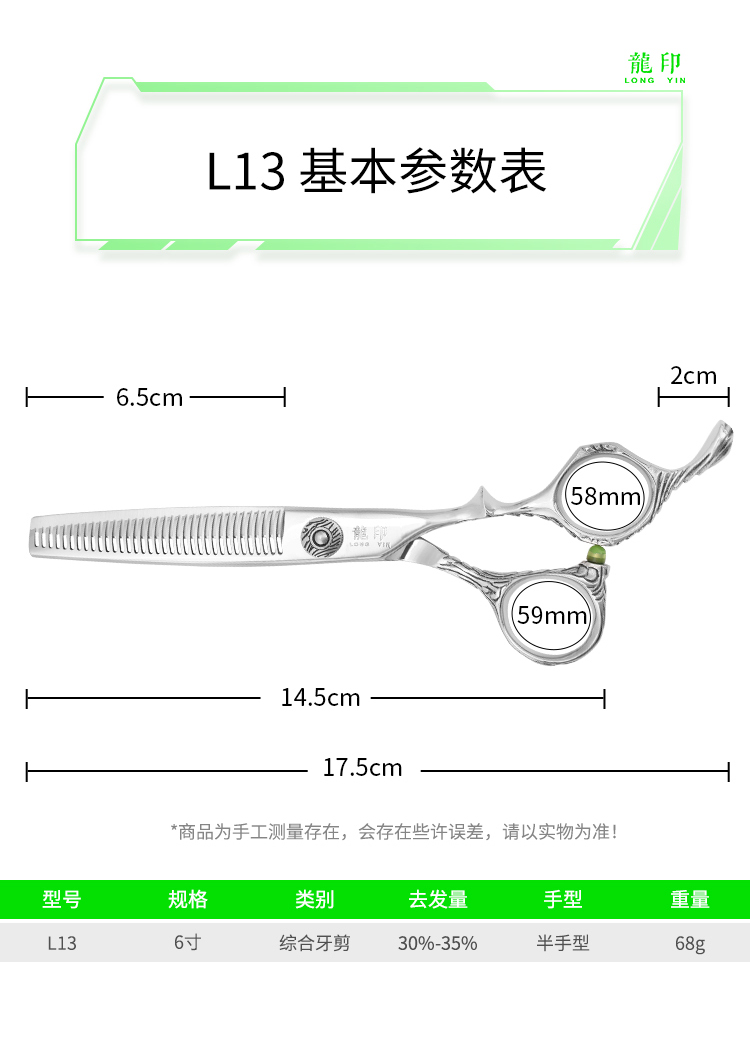 LONGYIN龍印牙剪L13综合牙剪30%-35%锋利耐用理发剪