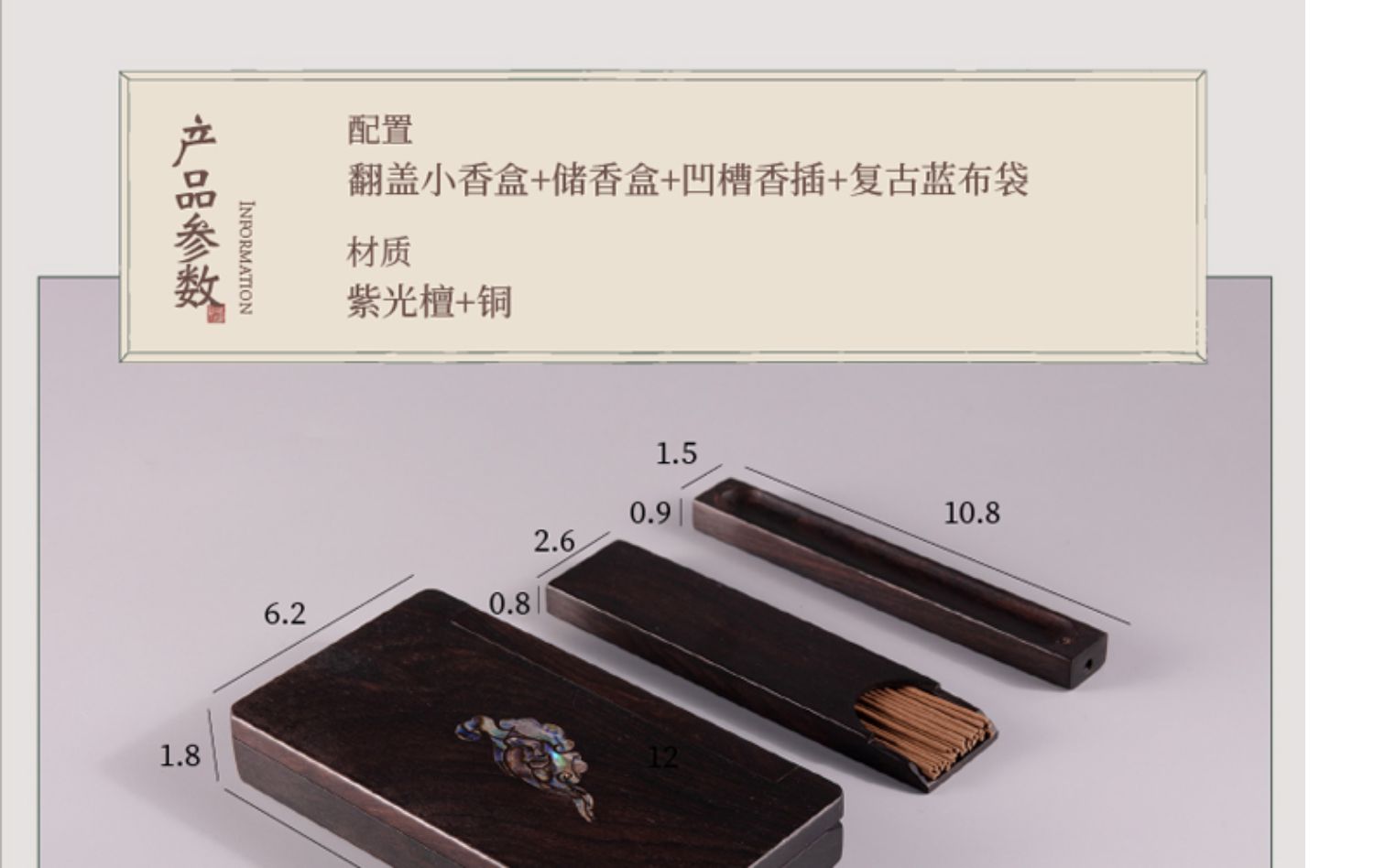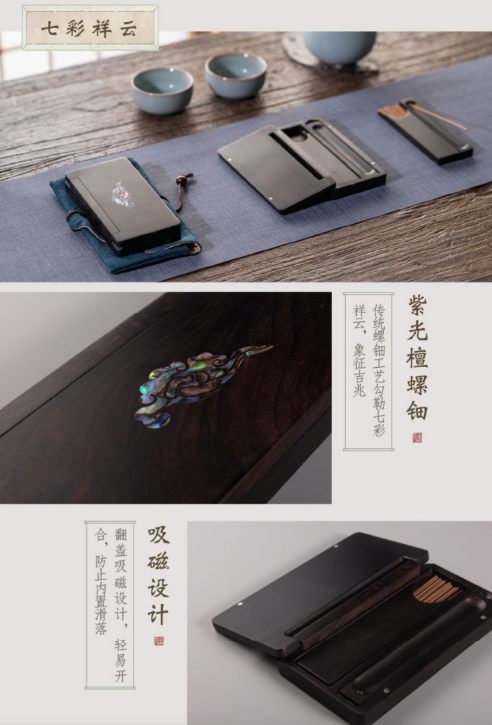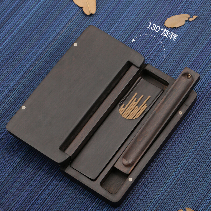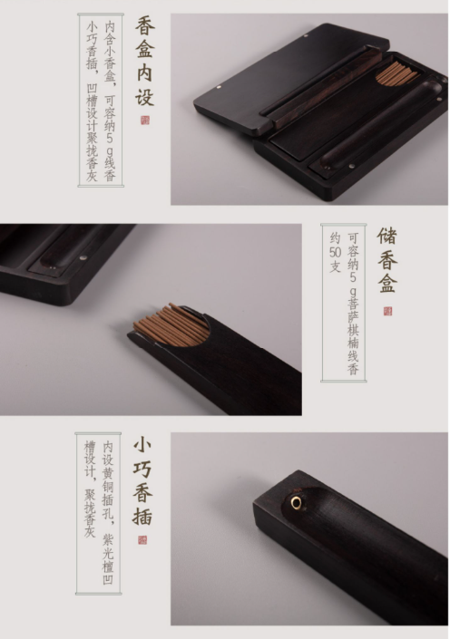 短款小香盒 便携装紫光檀祥云线香香插盒【器非凡】