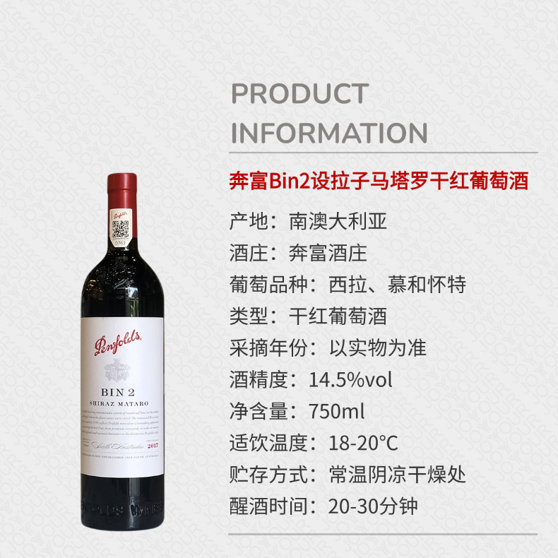 奔富Bin2设拉子马塔罗干红葡萄酒