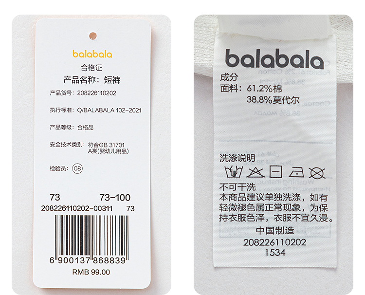【balaOne】巴拉巴拉童装宝宝裤子婴儿短裤2026新款夏季甜美时尚