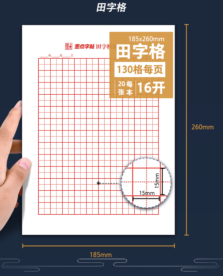 墨点文创 田字格米字格四线格硬笔书法练字本 比赛专用练字纸书法作品纸钢笔练字纸练字本