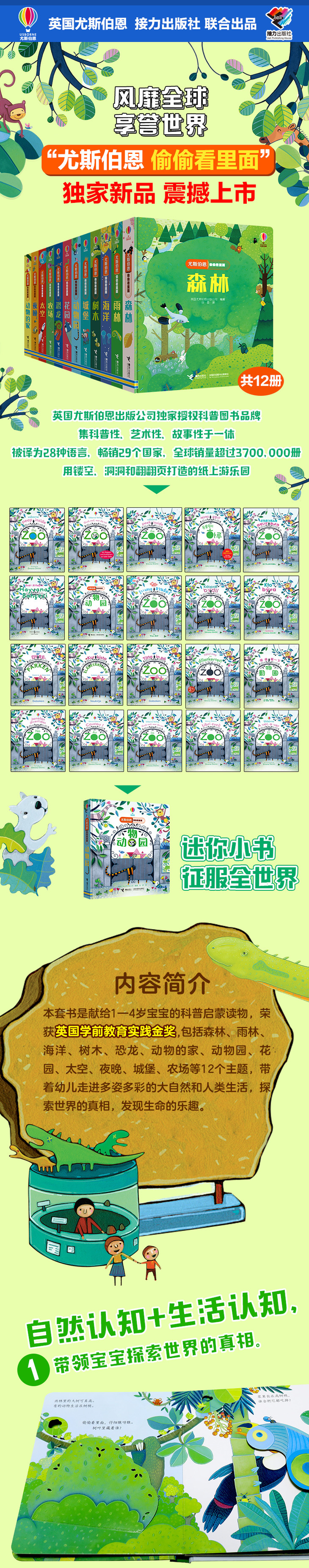 尤斯伯恩出版公司是英国领先的少儿出版社,所出版童书被译成语言超过100种,是全世界孩子都喜爱的图书出版品牌。童书品类丰富,囊括从婴儿书到青少年读物所有年龄段的所有类别图书,其中以科普书、玩具书和益智游戏类图书见长。所出品图书充满创意,各类图书形式新颖,新奇有趣,在世界图书市场独树一帜。多种图书获得各种奖项,2012年5月,尤斯伯恩被授予英国儿童出版协会年度最佳儿童出版商奖。