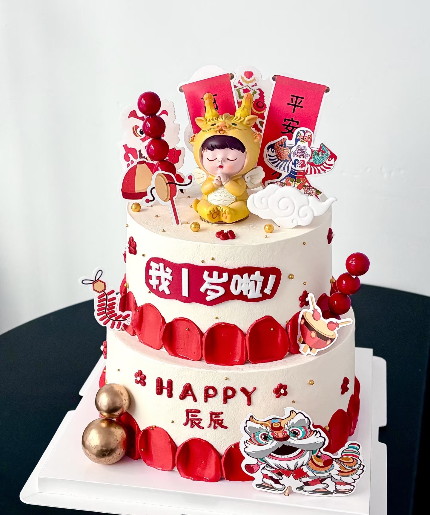 【优品系列】---双层【许愿龙宝宝】生肖龙、周岁生日蛋糕