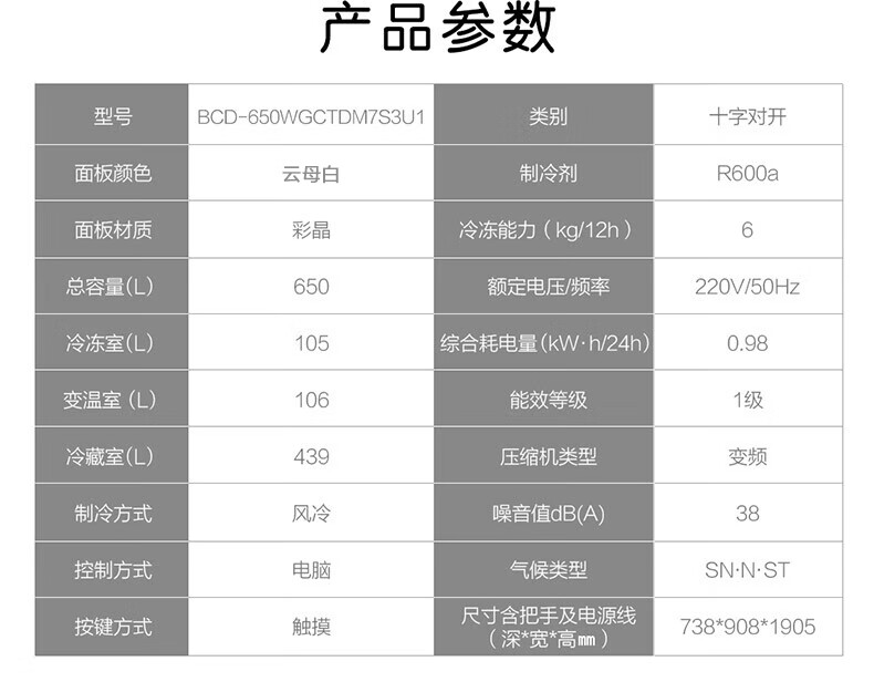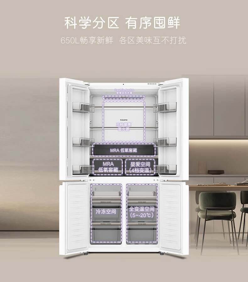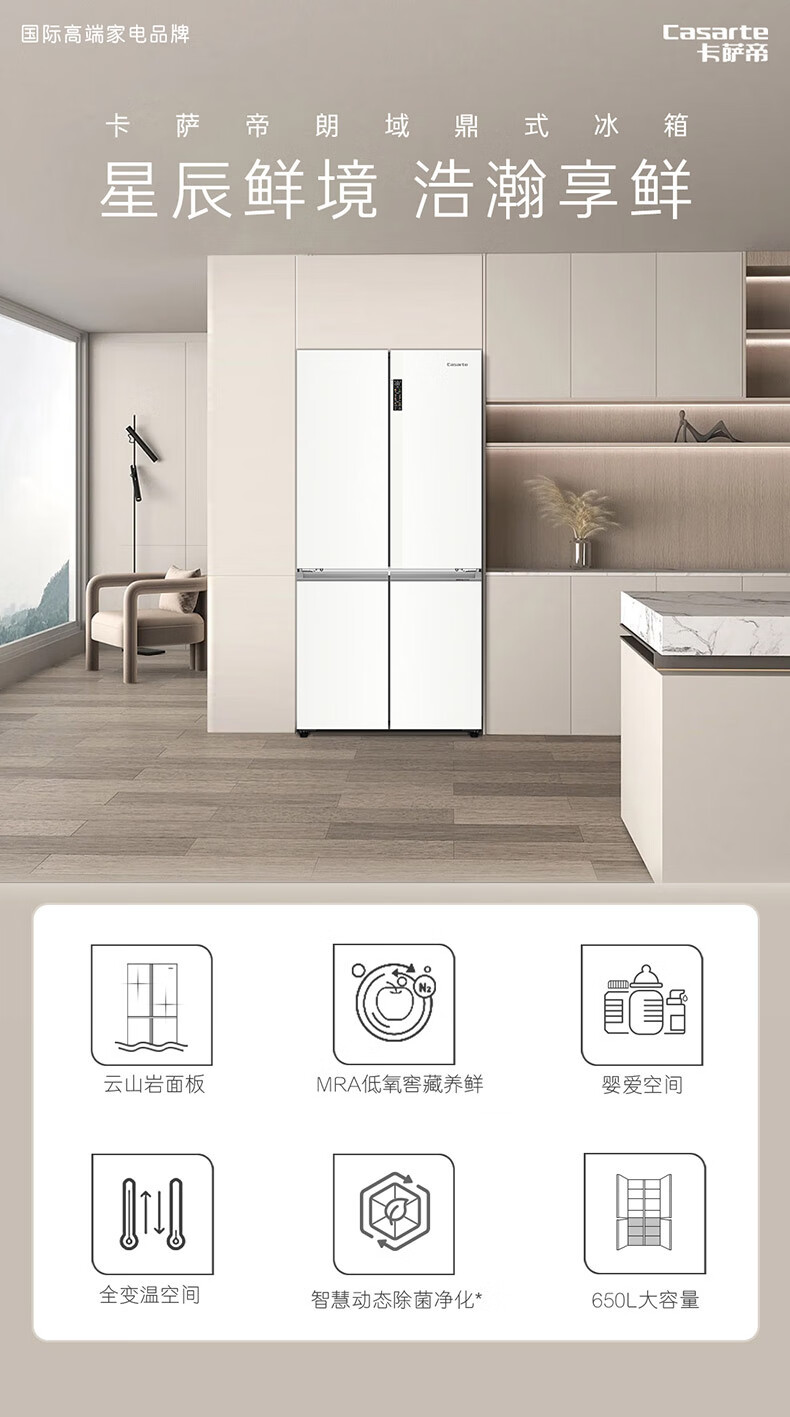 卡萨帝(Casarte)650升独立三系统冰箱十字对开四门家用大容量电冰箱全一级节能变频 全变温空间 智慧动态除菌 【云山岩】BCD-650WGCTDM7S3U1