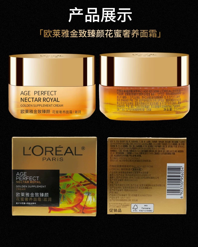 【专柜小样】法国 L'OREAL欧莱雅 金致臻颜小蜜罐面霜 (滋润/清爽) 25ml
