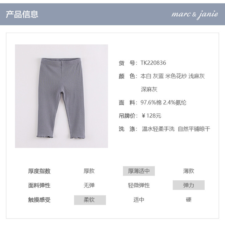 马克珍妮春装童装女童儿童薄款针织打底裤 婴儿宝宝裤子春秋220836