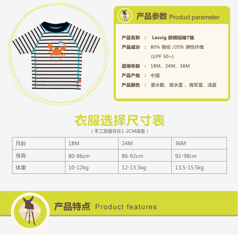 LASSIGLASSIG男童防晒短袖T-湖水蓝[蓝色系]1431006500