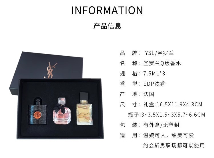 【香港直邮】圣罗兰香水三件套(自由之水7.5ml+反转巴黎7.5ml+黑鸦片7.5ml)