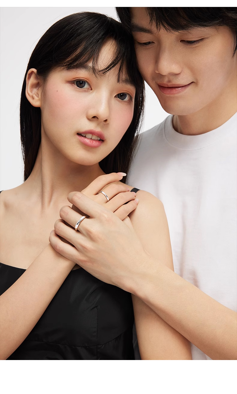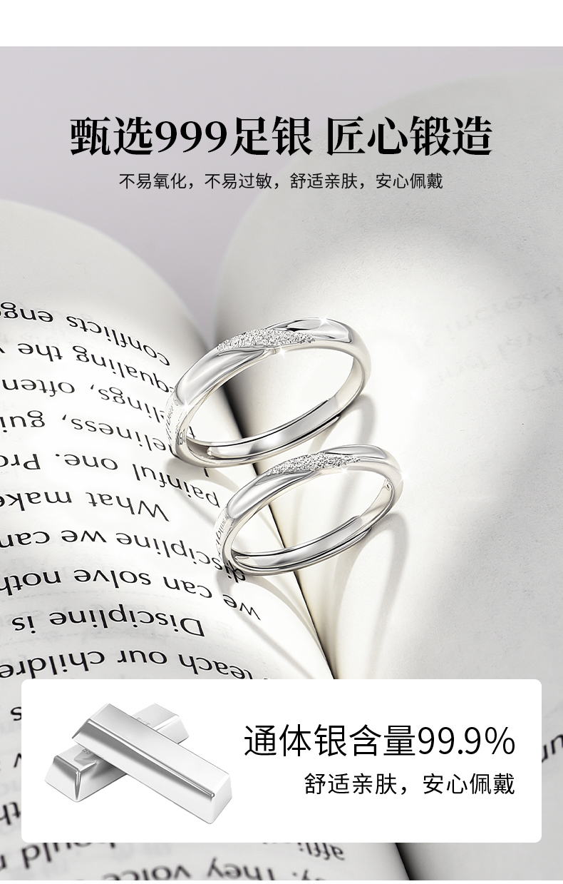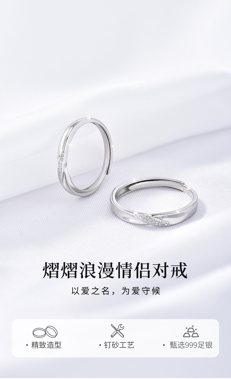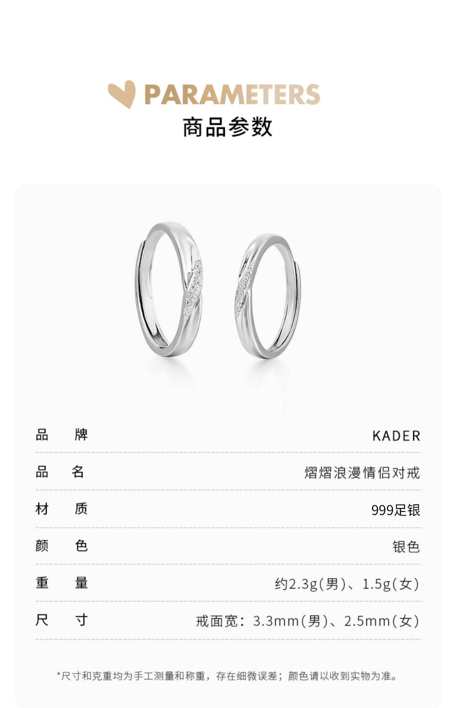 KADER卡蒂罗 熠熠浪漫情侣对戒戒指(支持刻字)999足银 情侣款对戒小众设计感男女一对开口 节日礼物 送礼