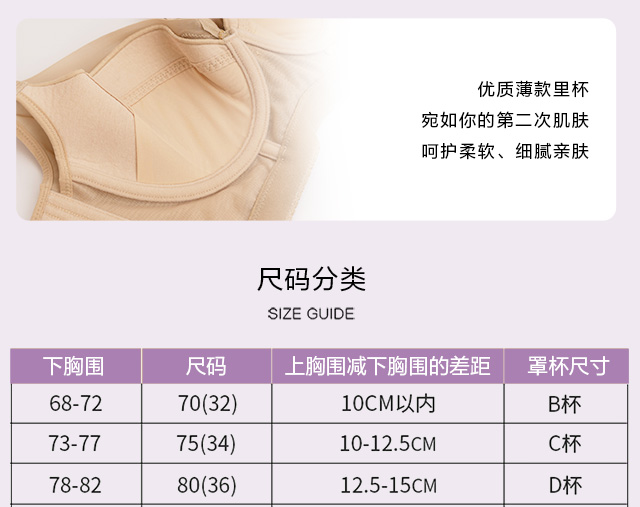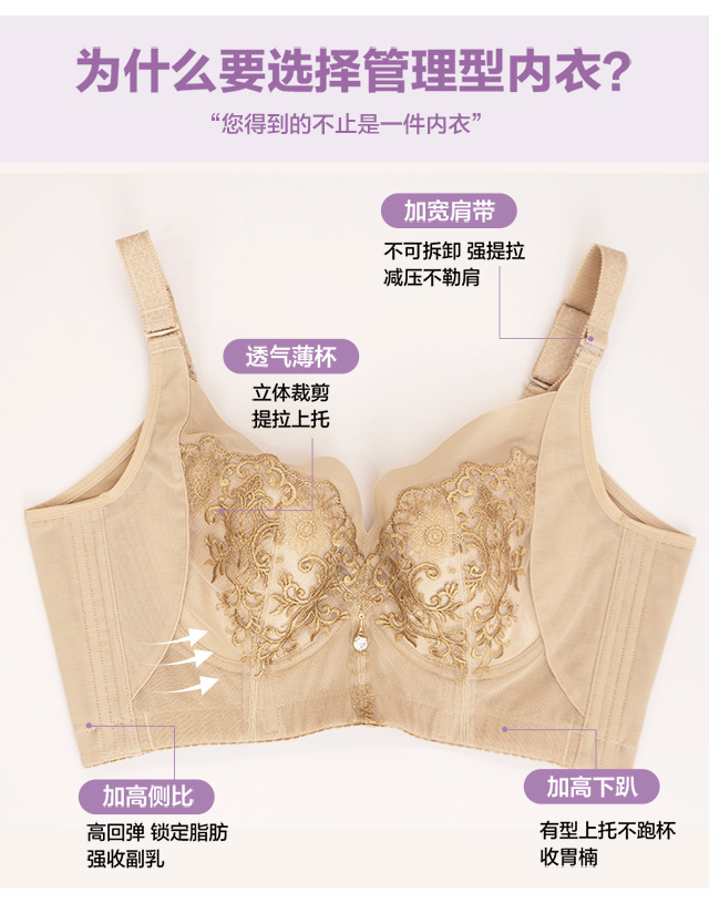 花溪调整型文胸 大胸显小全罩杯 薄款聚拢文胸 上托防下垂 侧收副乳 透气无钢圈内衣