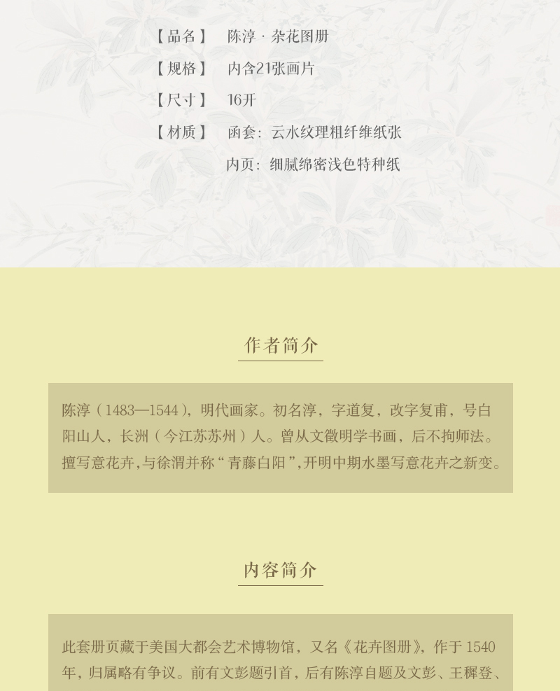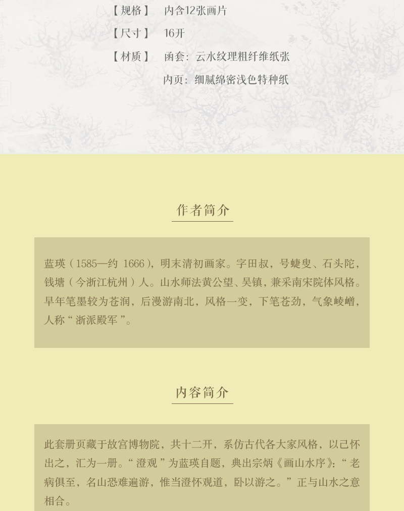 大家小品散页画册(新5种任选)陈淳杂花图册/石涛野色图册/仇英临宋人画册/蓝瑛澄观图册/王时敏杜甫诗意图册