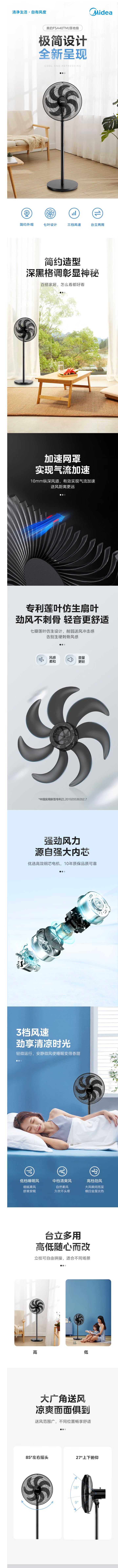 美的(Midea)(510430 )台立两用落地电风扇7叶远距送风极简设计易拆洗3档风速轻音低噪客厅办公FSA40TMJ(线下同款)