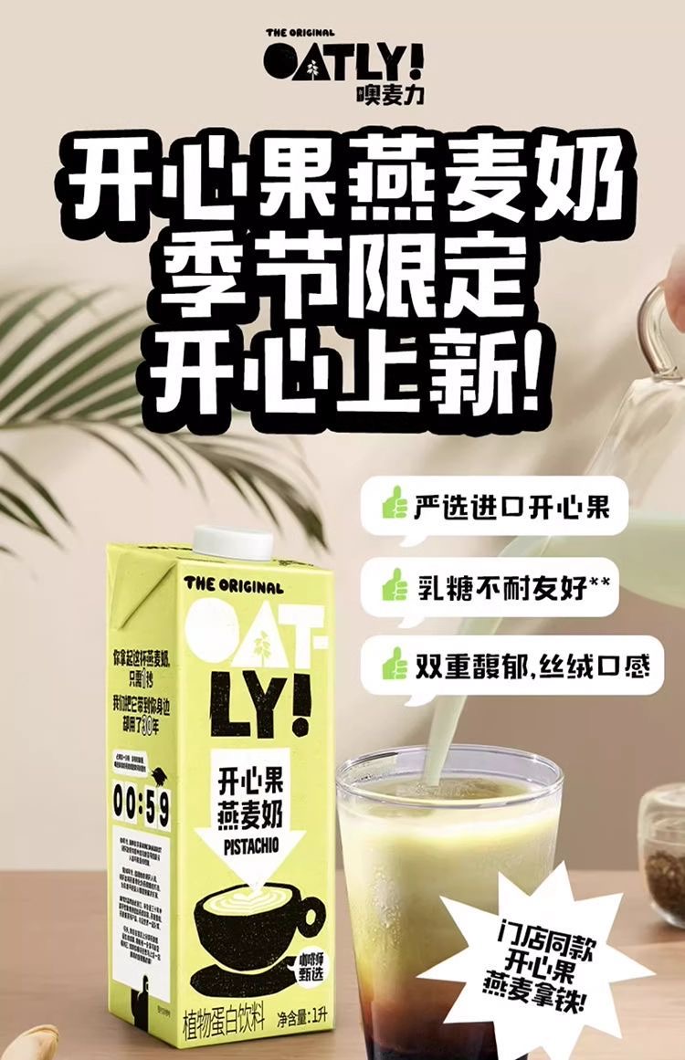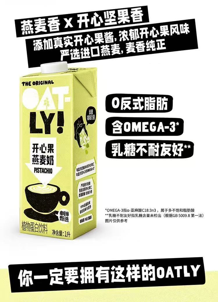 Oatly开心果燕麦奶1L奥麦力燕麦拿铁植物蛋白饮料