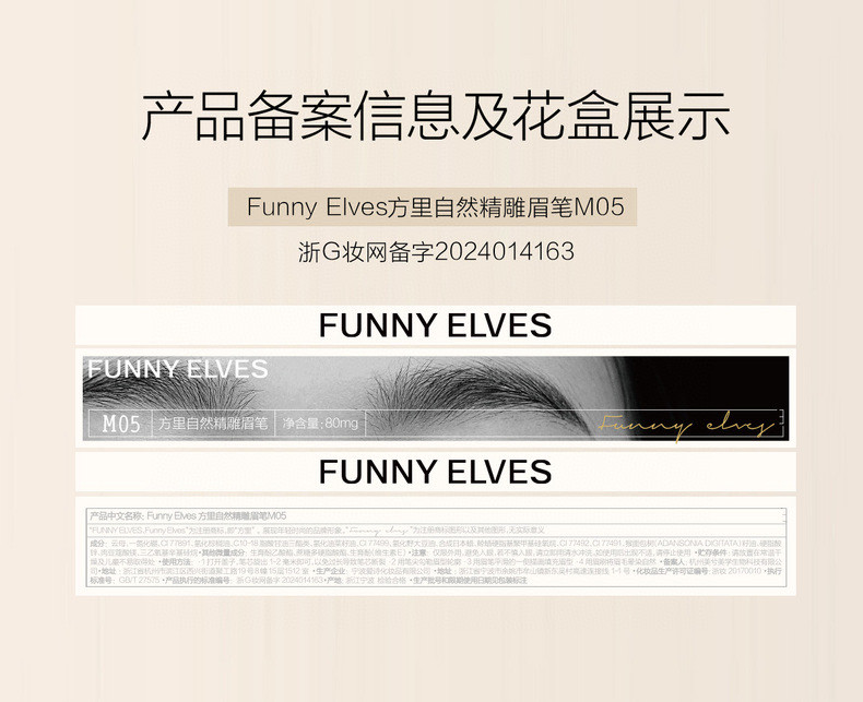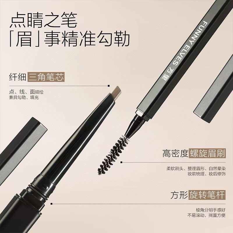 Funnyelves方里眉笔M05显色自然黑棕晕染纤细顺滑不易结块百搭