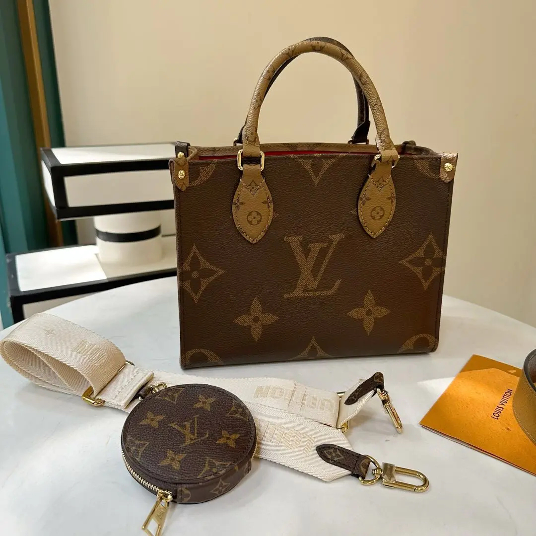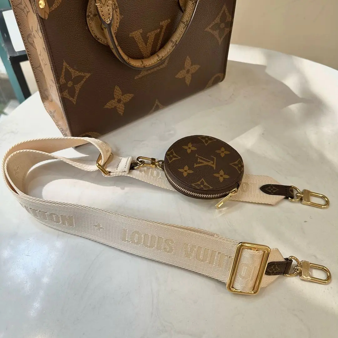 【商品详情】正品二手 LV on the go 拼色老花 小号 托特包 🍎98新 25×19 芯片款 配件:票 子袋 肩带 防尘袋。嘎嘎新 可活泼可商务