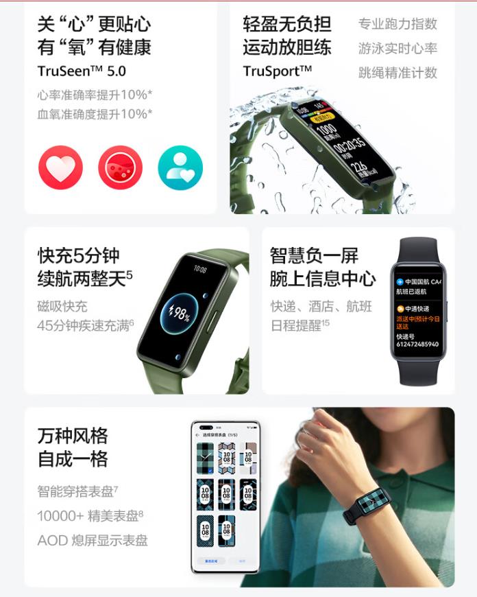 华为HUAWEI手环8 标准版 心率、血氧、睡眠监测 磁吸快充