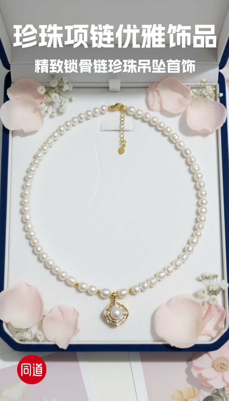 轻奢极简 7mm淡水珍珠满钻吊坠 锁骨链 毕业季礼物 [发:79]