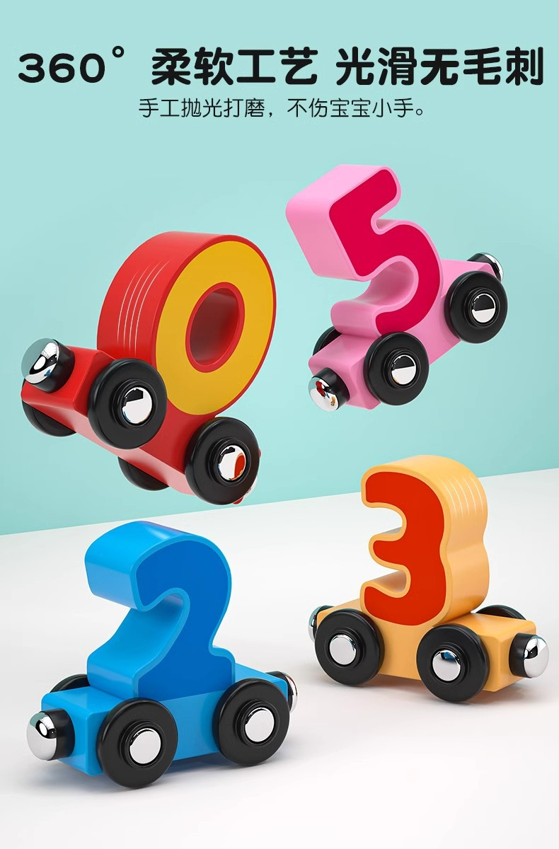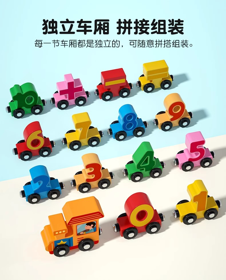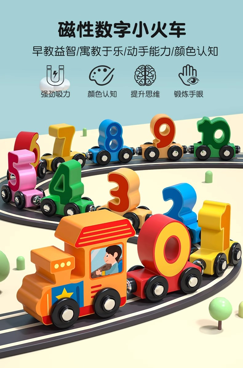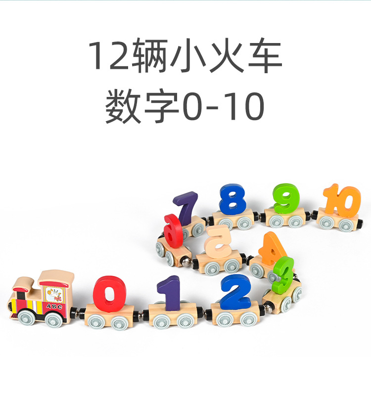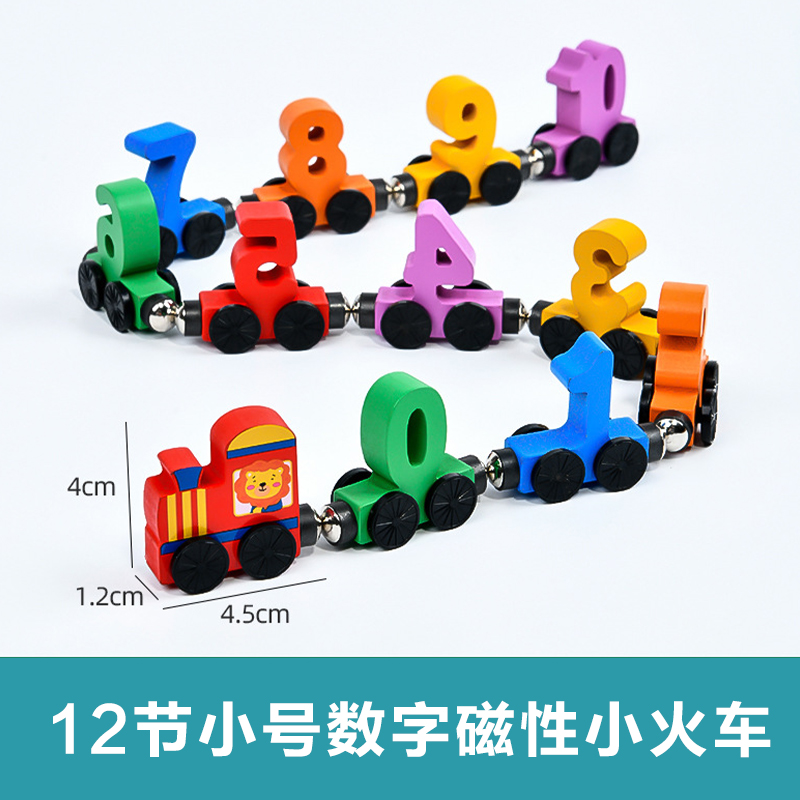【18.8元12个磁力小火车积木】儿童早教益智玩具磁力小火车木质数字认知12节连体木制趣味玩具