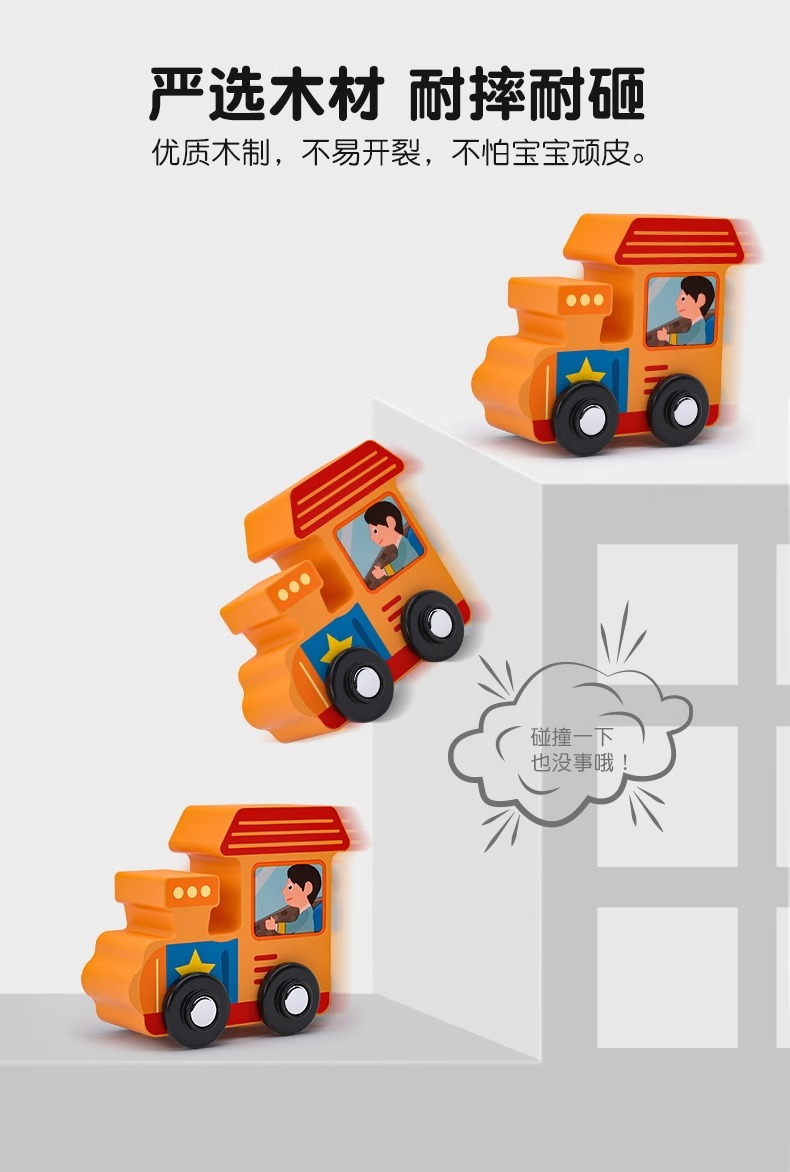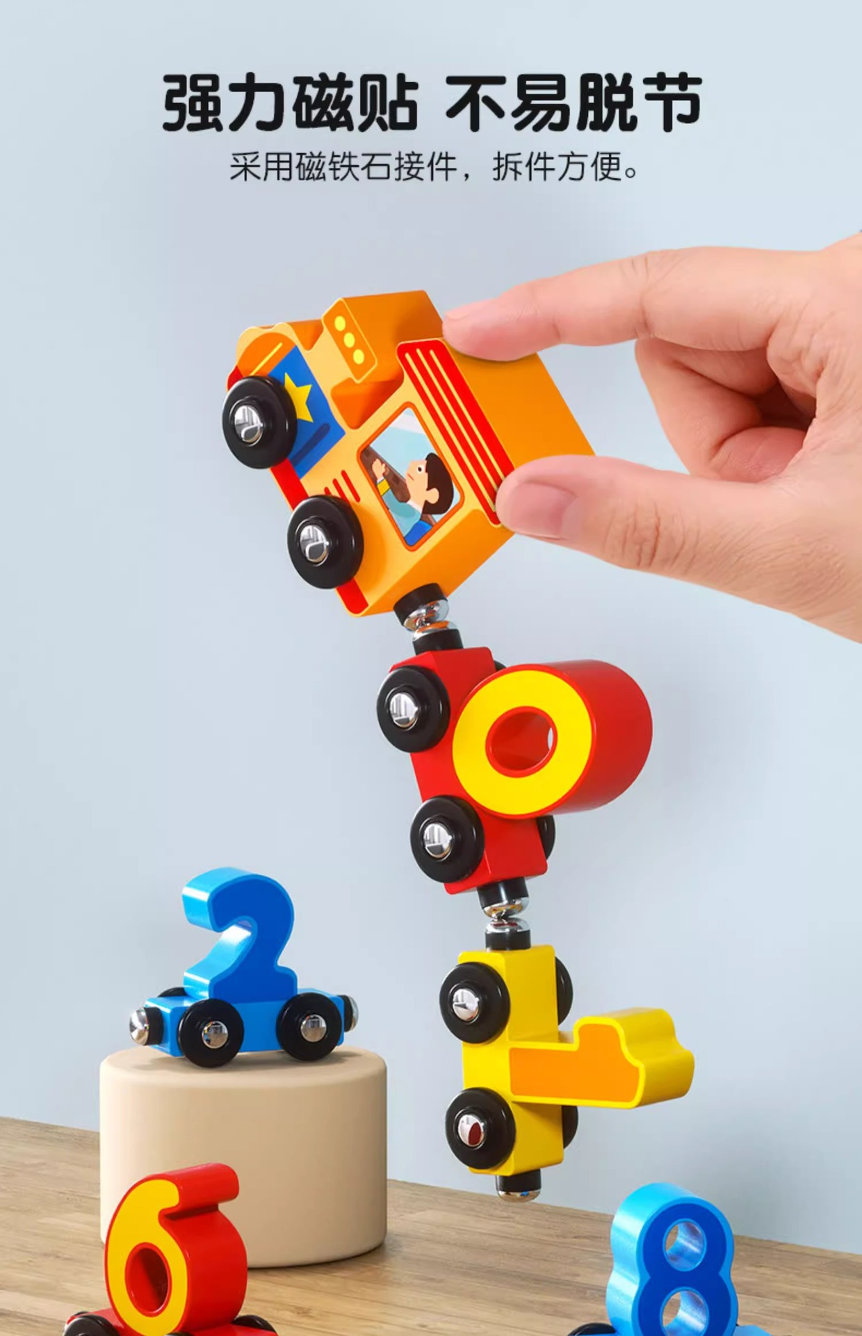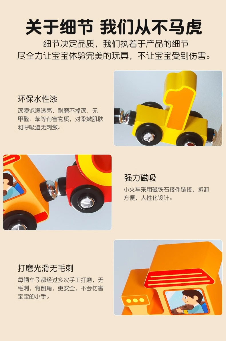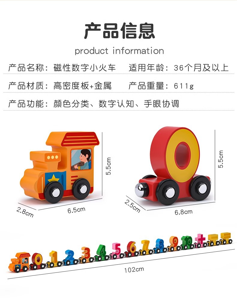 【18.8元12个磁力小火车积木】儿童早教益智玩具磁力小火车木质数字认知12节连体木制趣味玩具