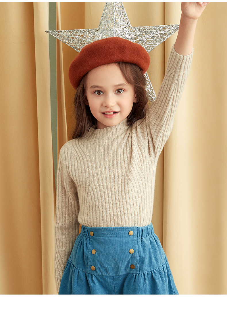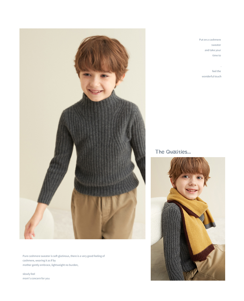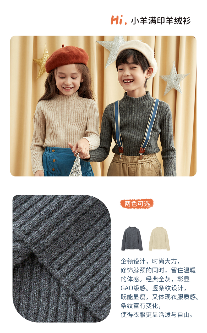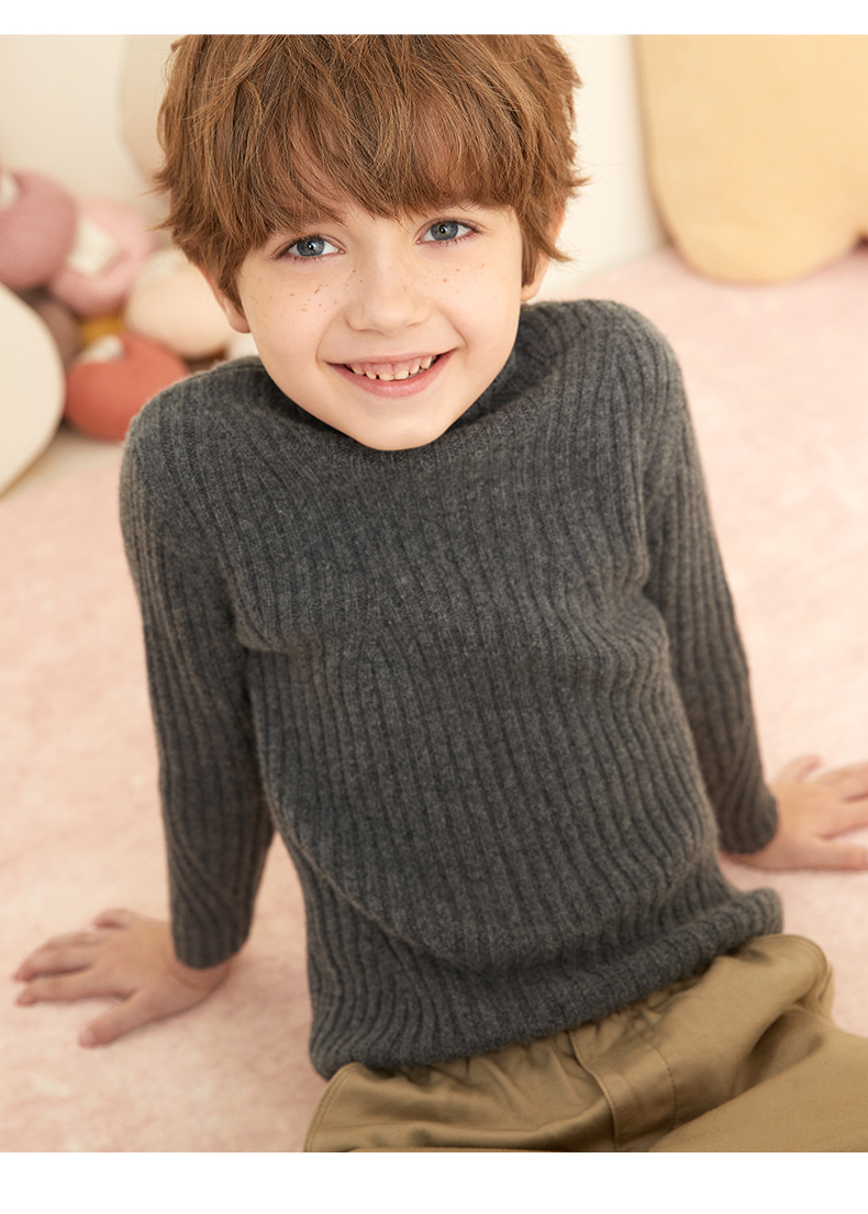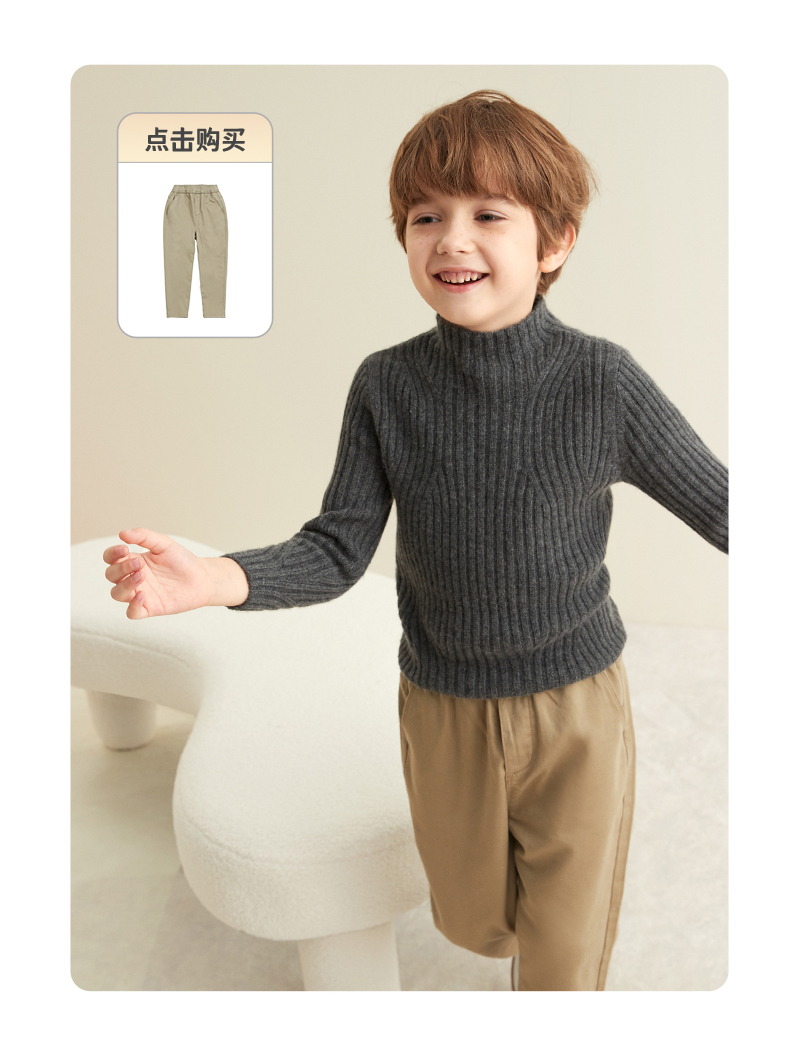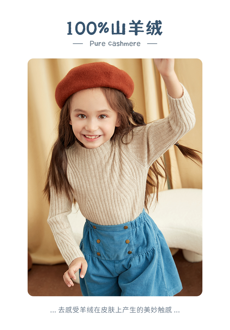 【童装企领羊绒套衫】羊绒世家童装100%山羊绒衫半高领抽条保暖毛衣
