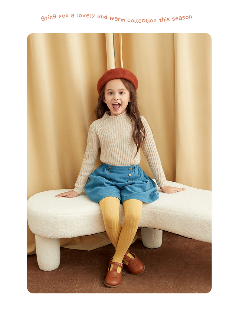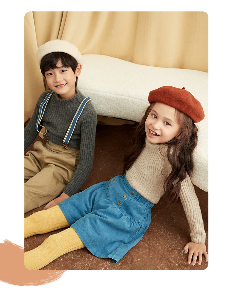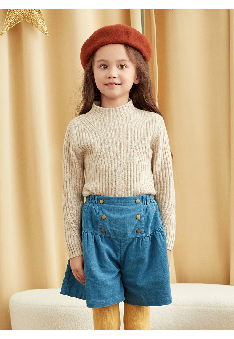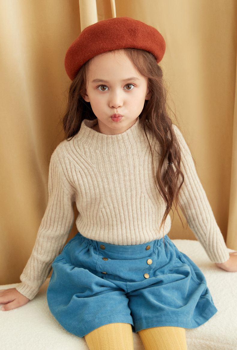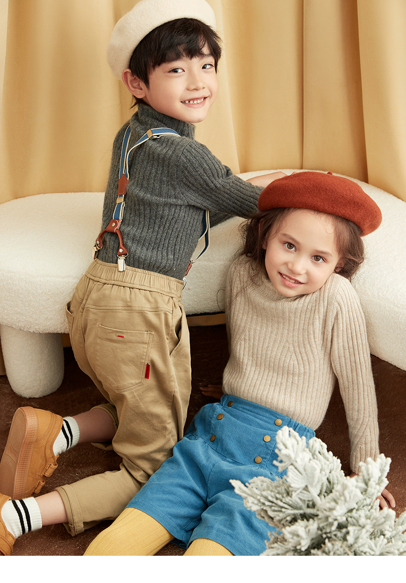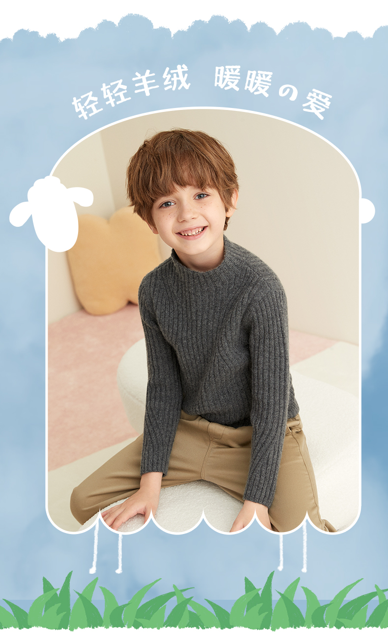 【童装企领羊绒套衫】羊绒世家童装100%山羊绒衫半高领抽条保暖毛衣