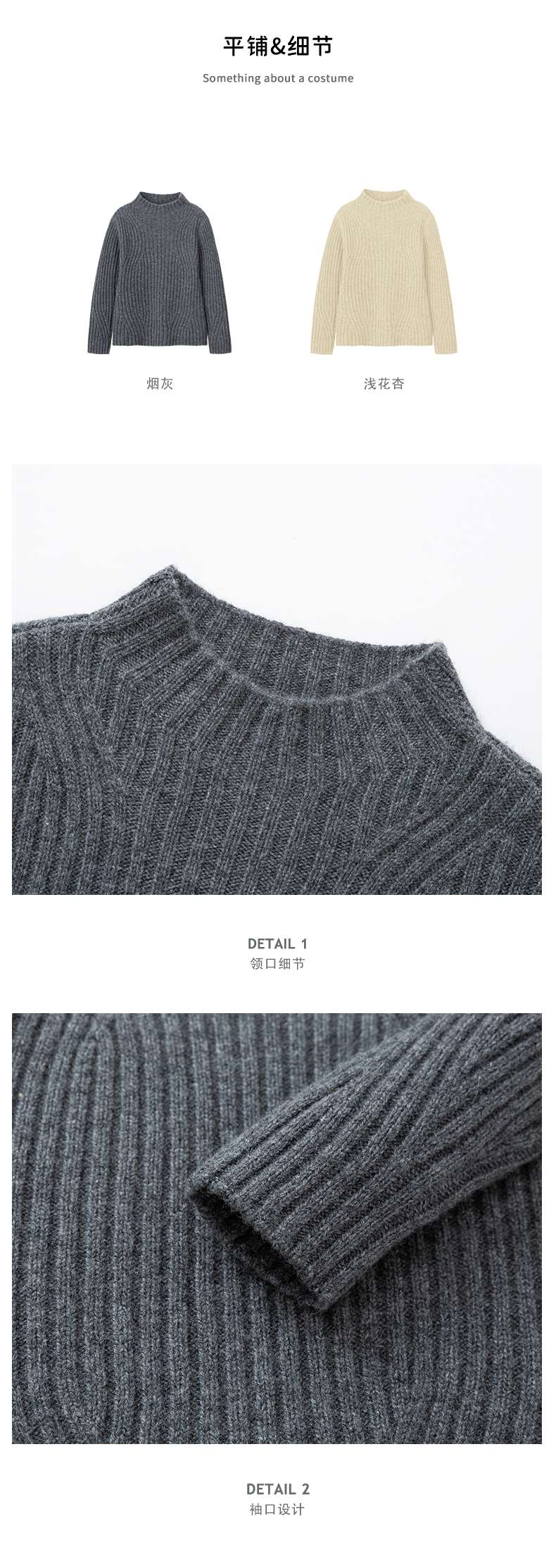 羊绒世家2020年早春新品女士高领100%山羊绒衫时尚抽条修身毛衣