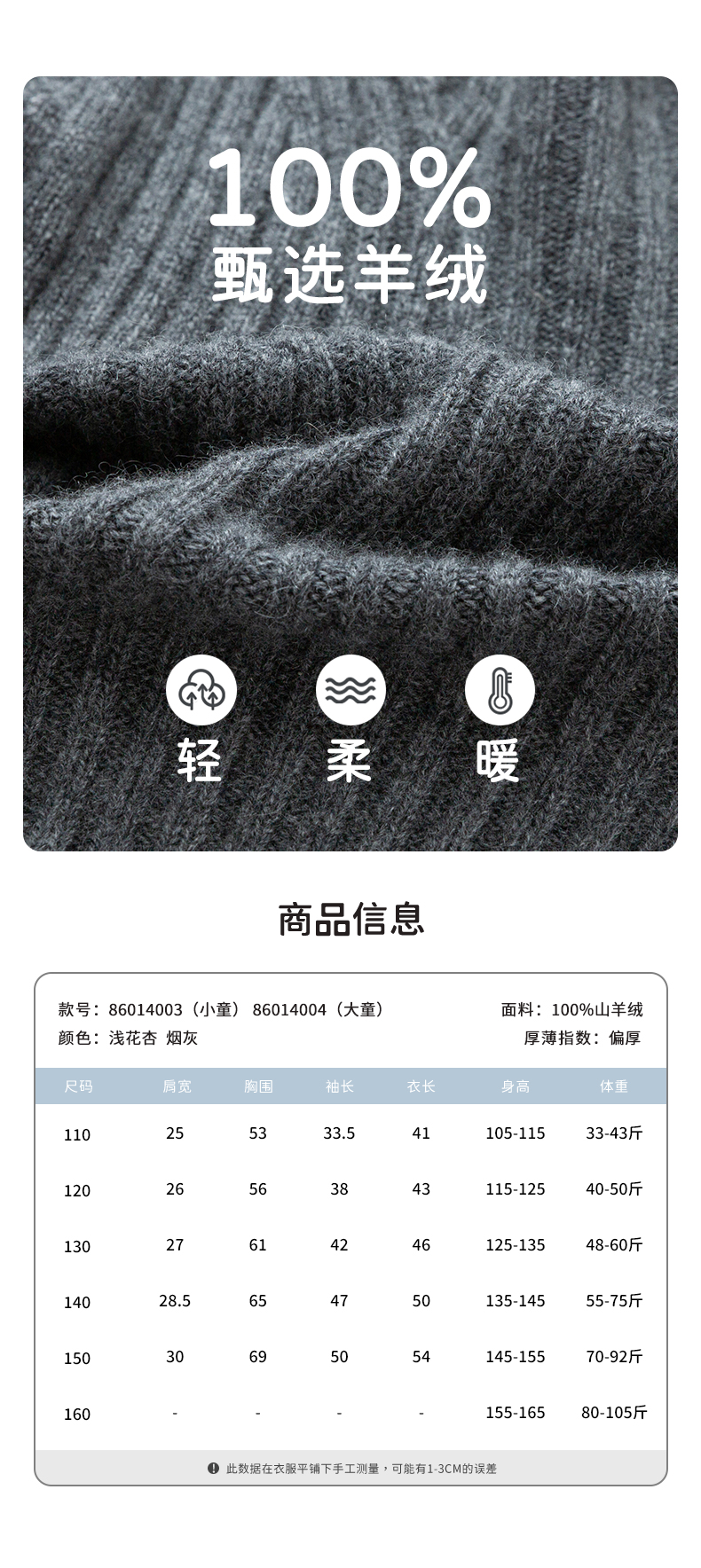 材质成分: 山羊绒(羊绒)100%
