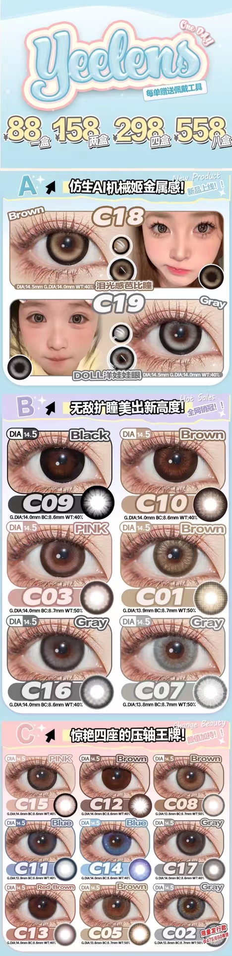 日抛活动:Yeelens大直径全系列色卡 大黑,大直径14.5日抛