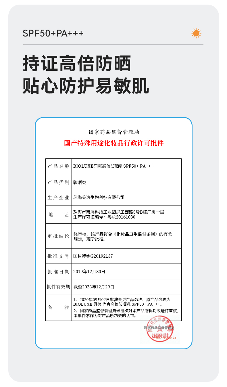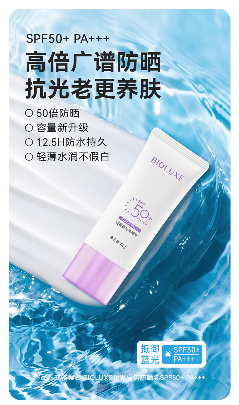 贝露丝 润爽高倍防晒霜 SPF50+ 60克 新款