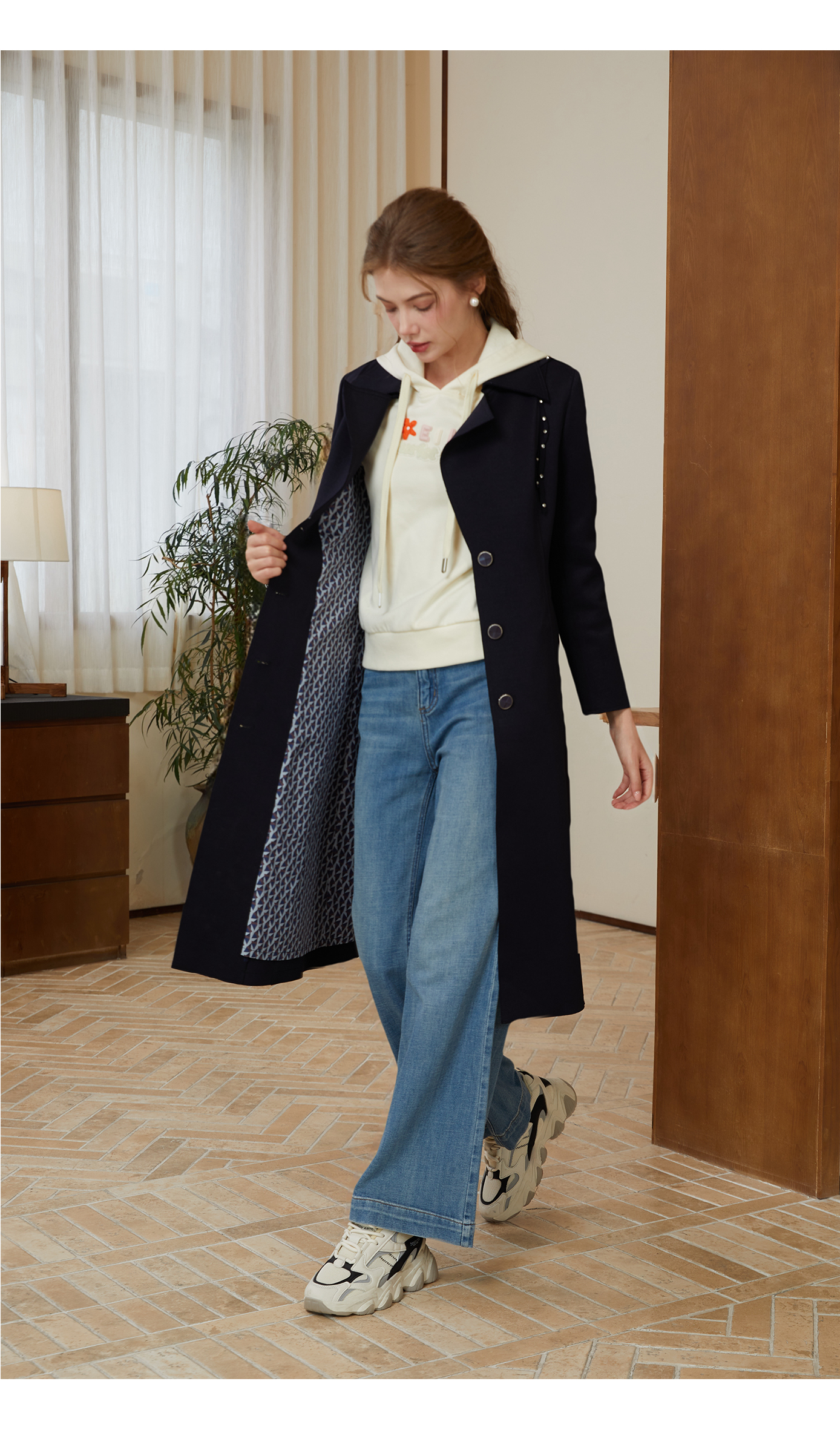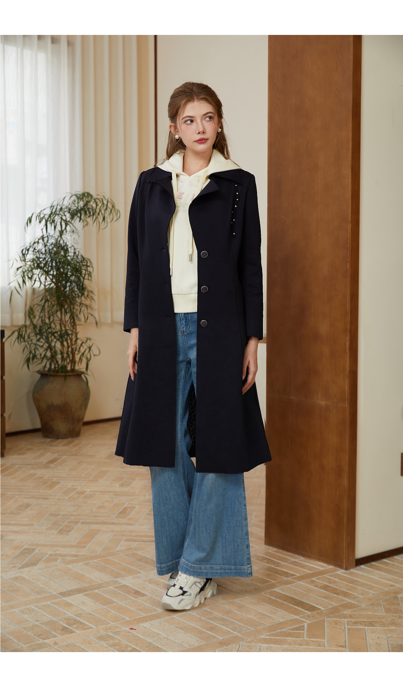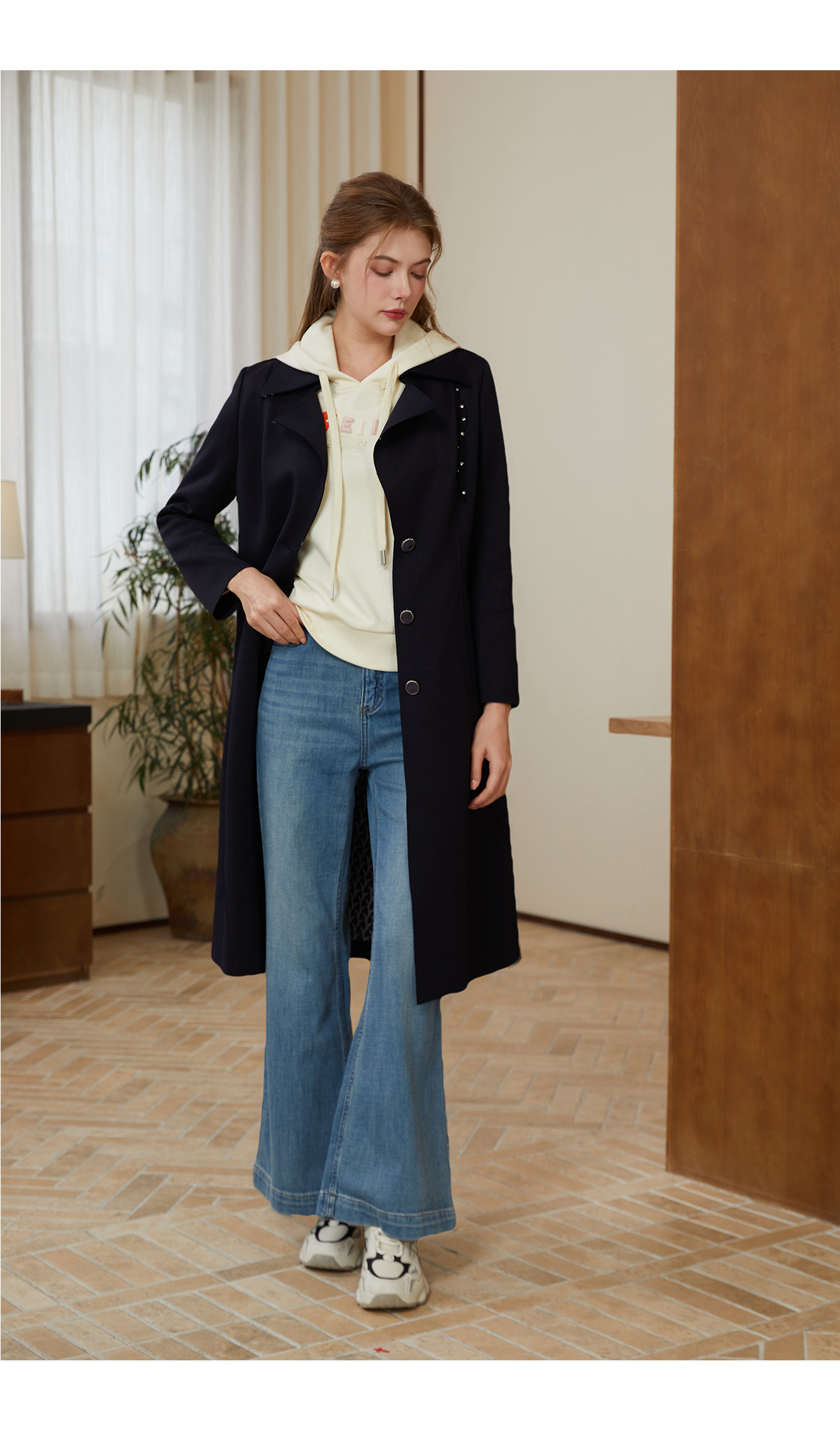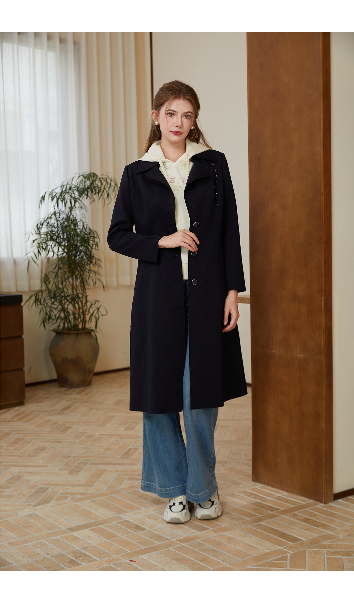 司歌收腰单排扣风衣中长款外套秋冬女R921021X