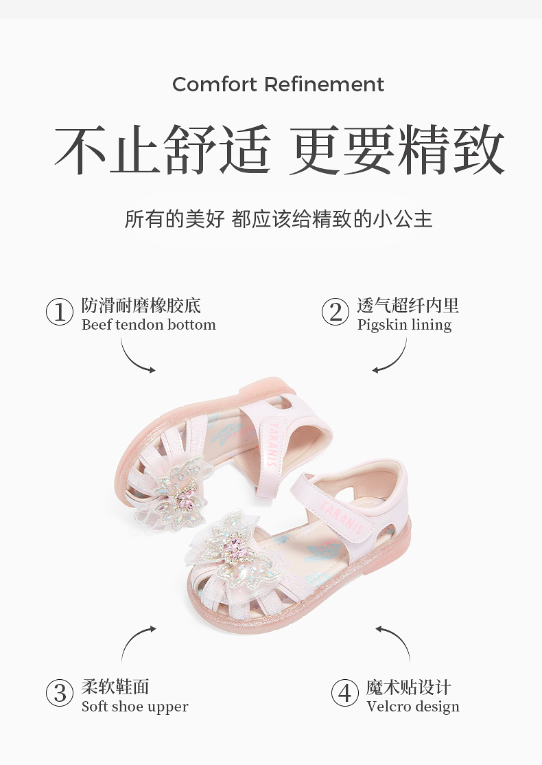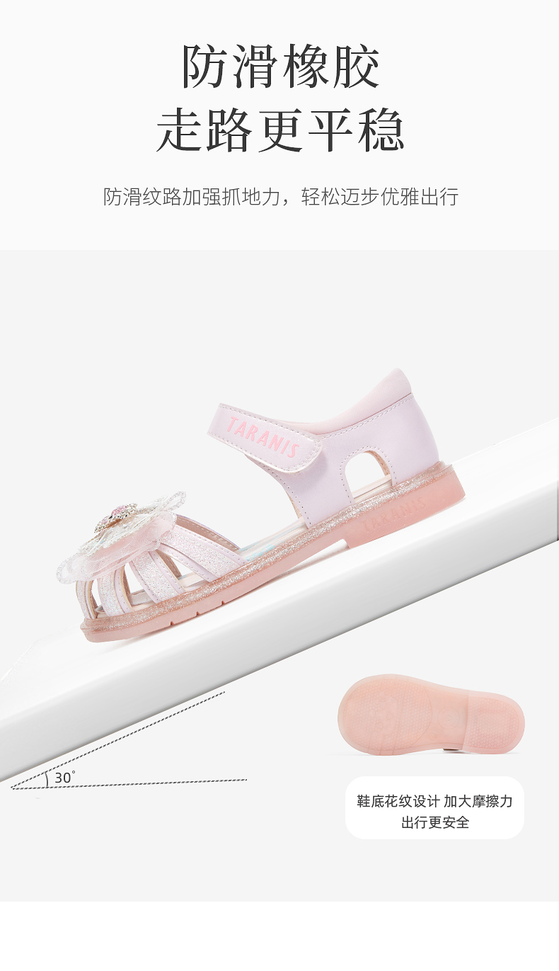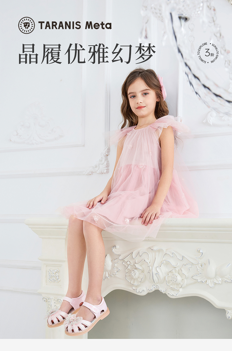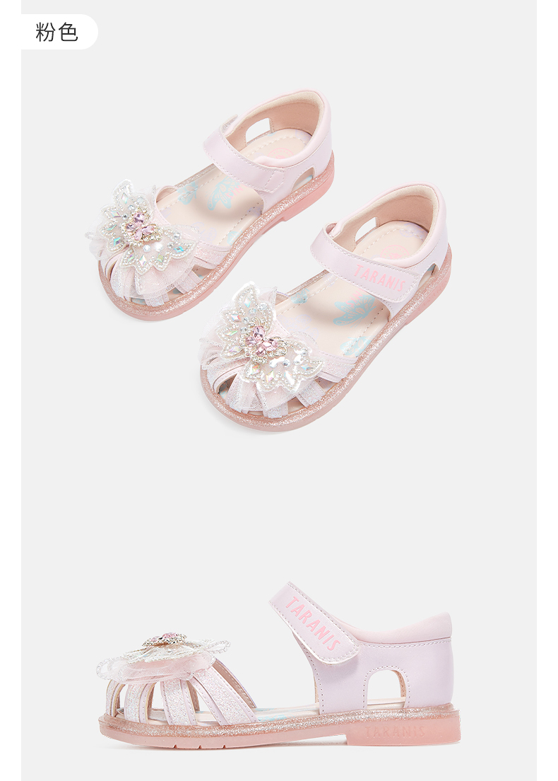 泰兰尼斯meta凉鞋女童粉色公主夏清凉网孔排汗软底露趾轻便透气鞋 M07X5B6239