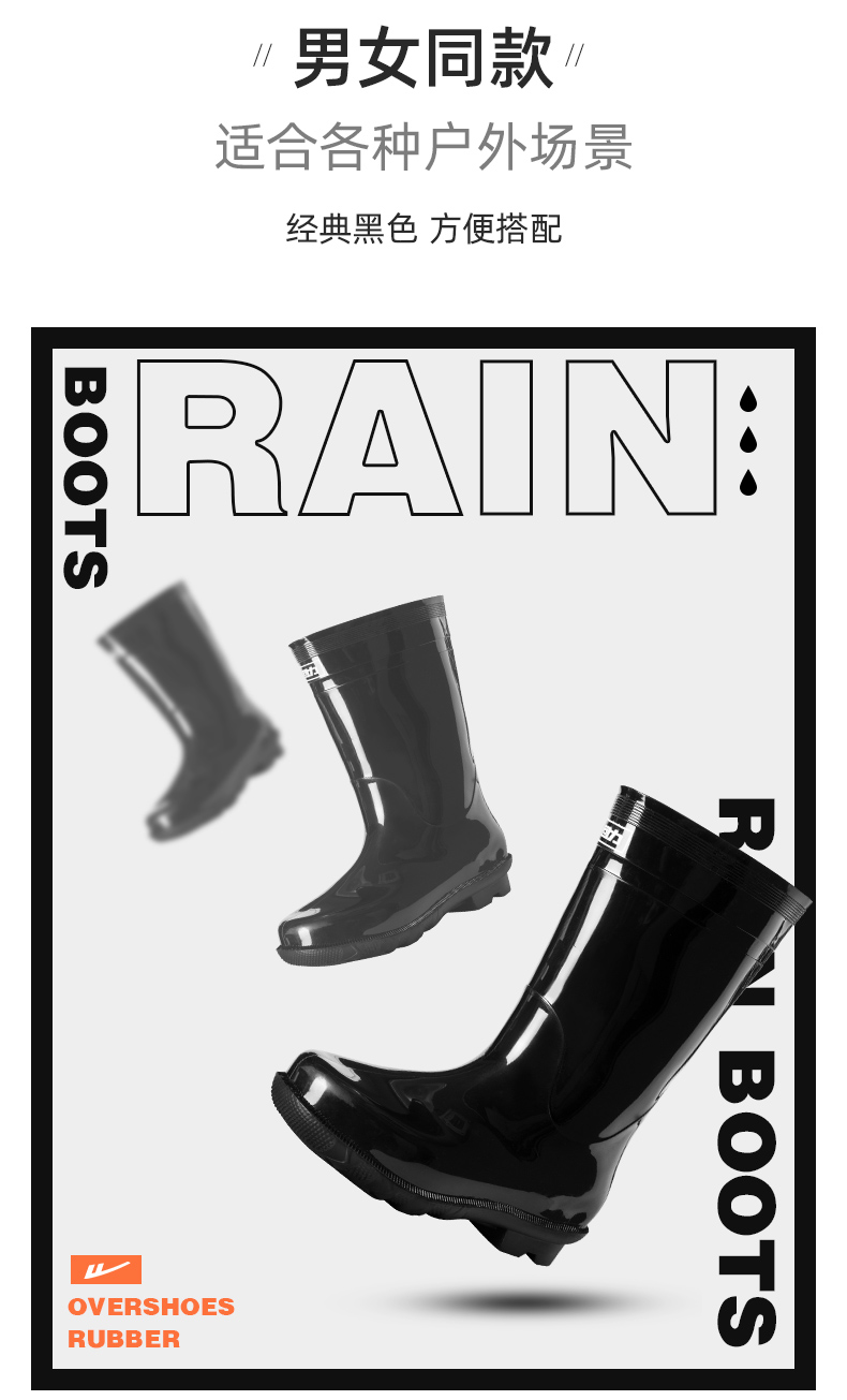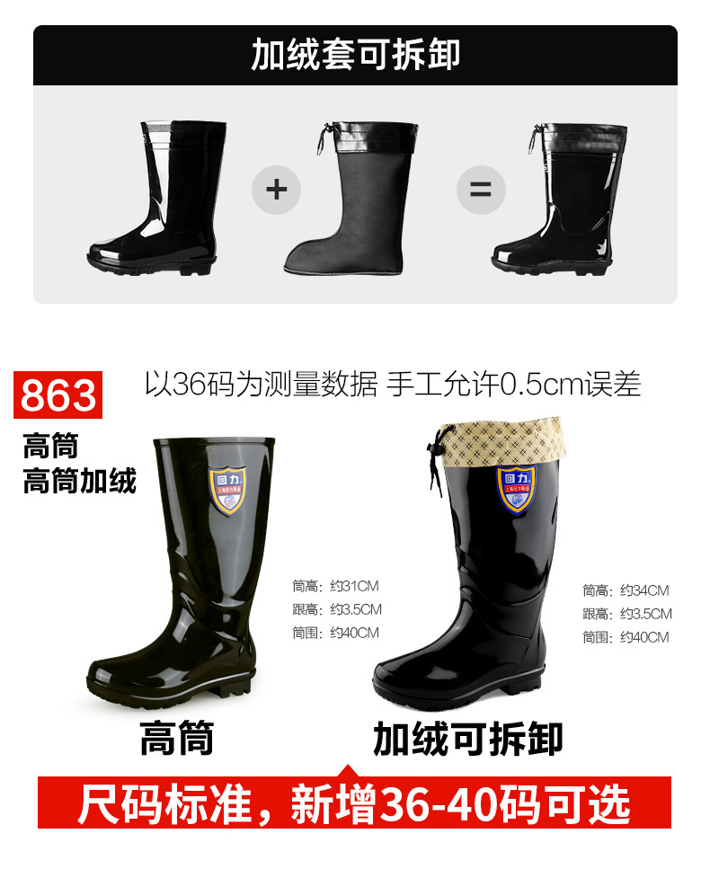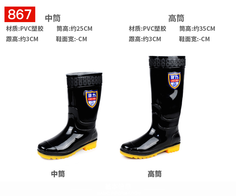 回力雨鞋男款水鞋雨靴子男士钓鱼套鞋中高筒赶海防水夏季工地胶鞋XD-838