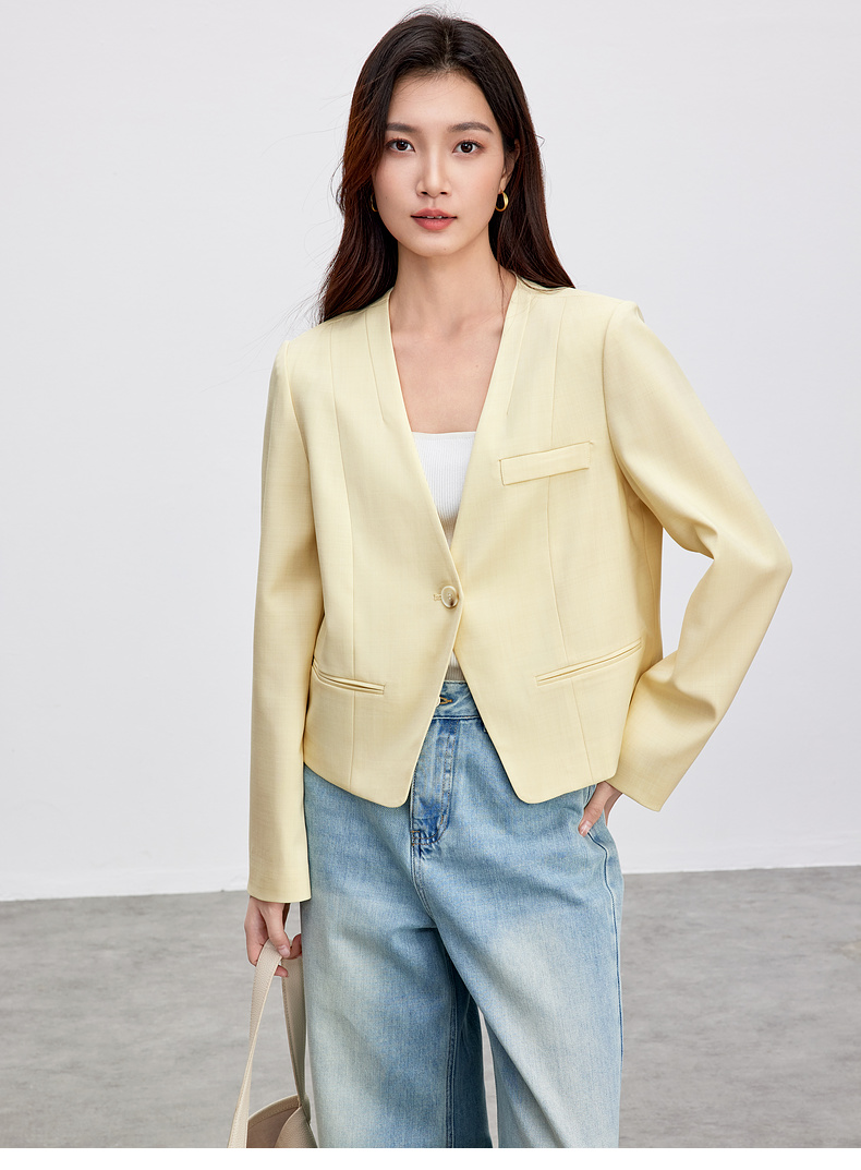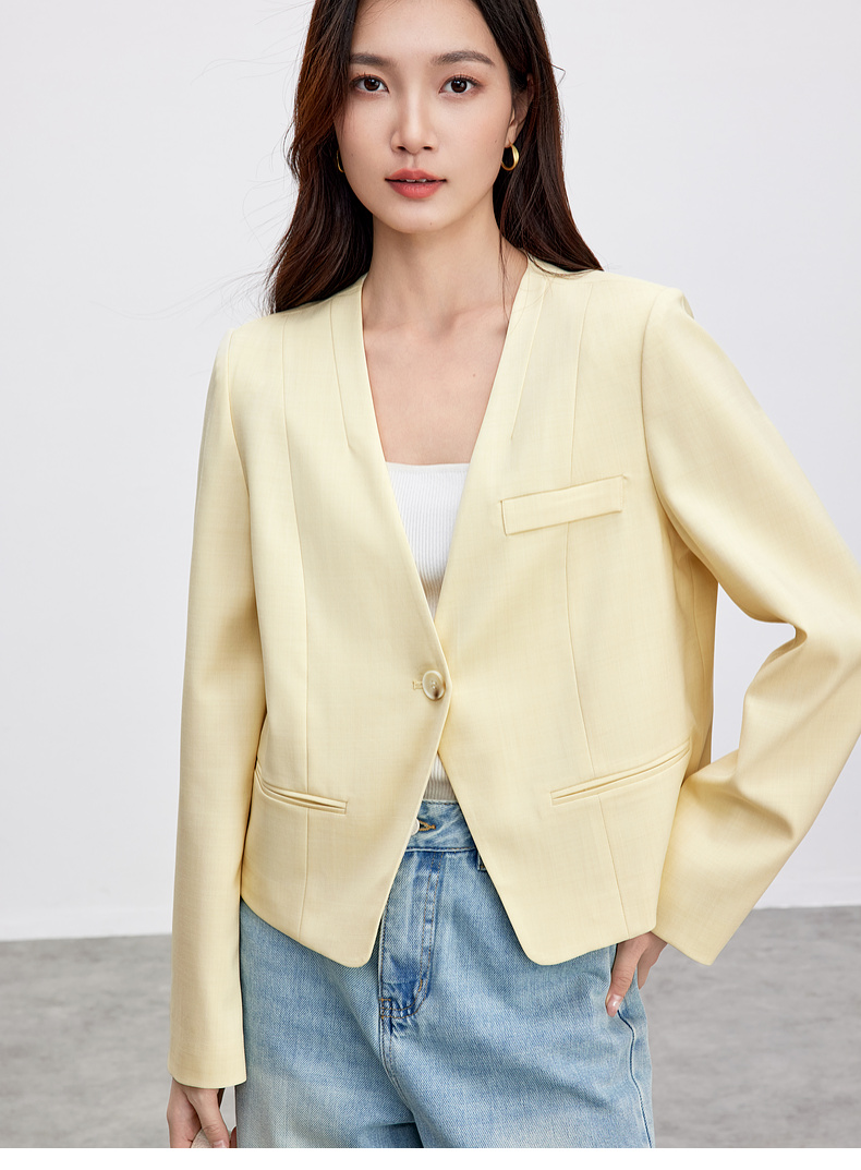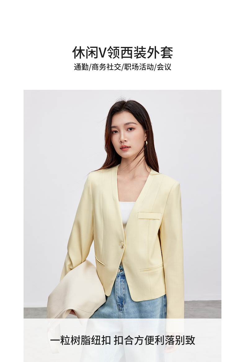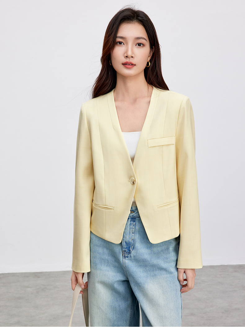 【内购】【都市休闲西装外套】简洁一粒树脂纽扣V领短款小个子西装外套-151X58965X