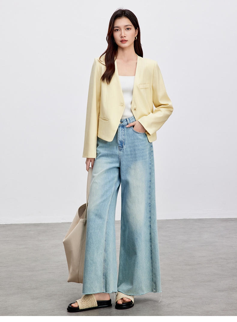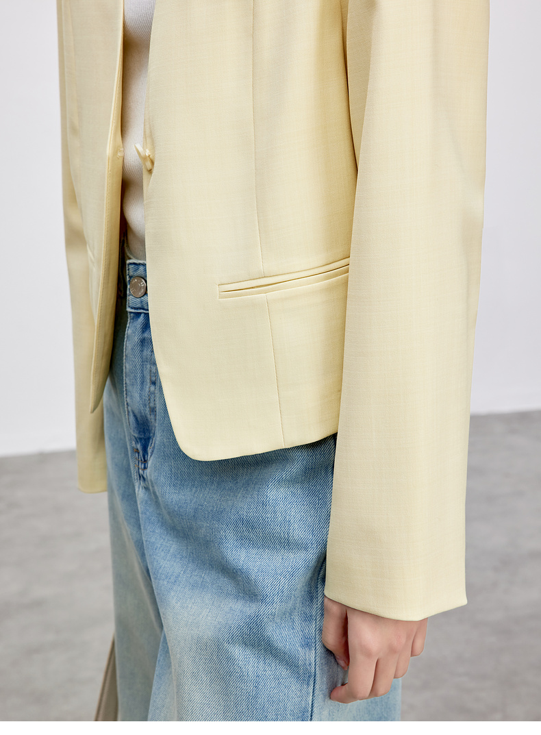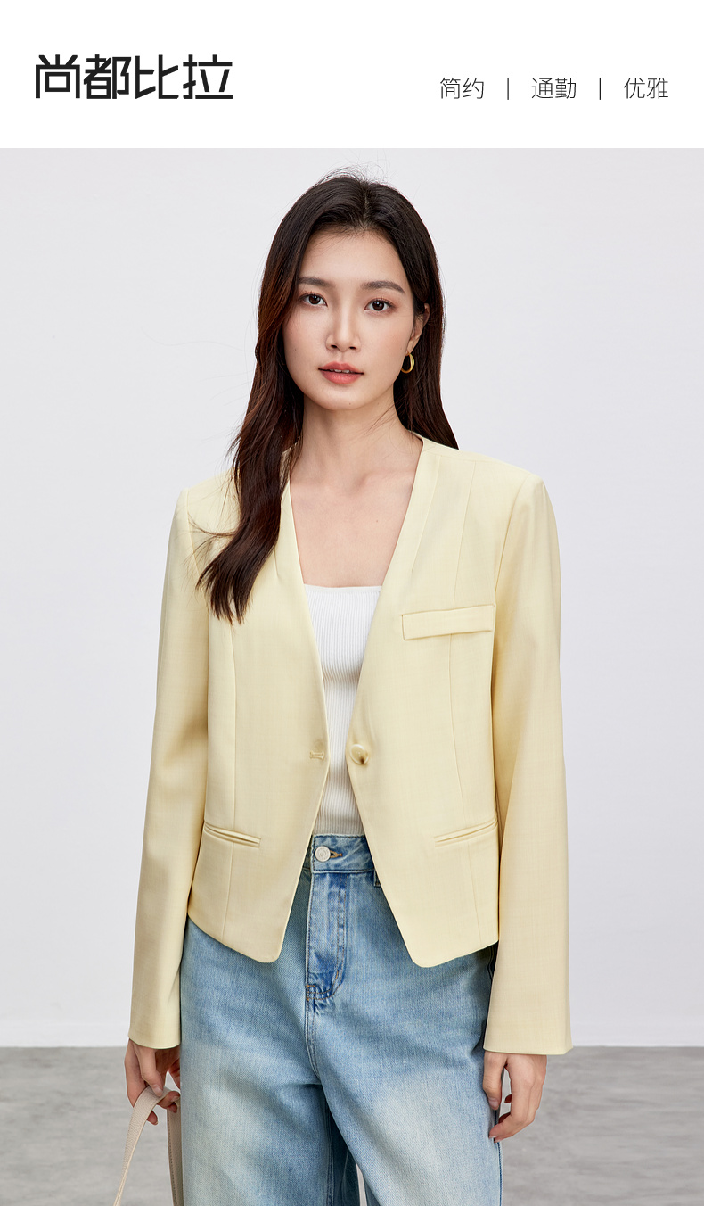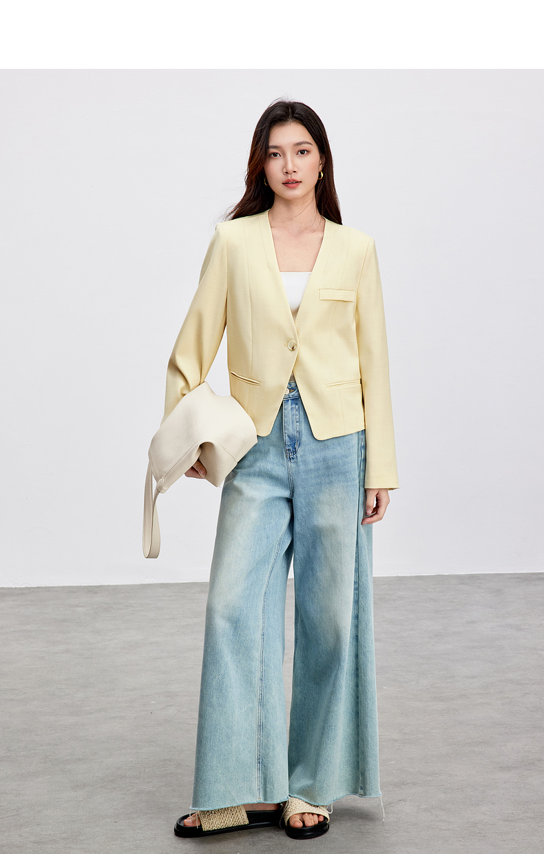 【内购】【都市休闲西装外套】简洁一粒树脂纽扣V领短款小个子西装外套-151X58965X