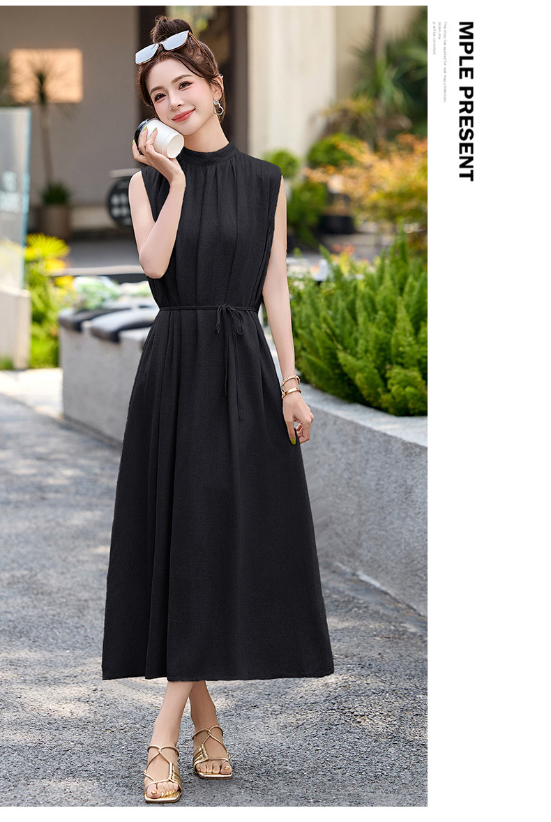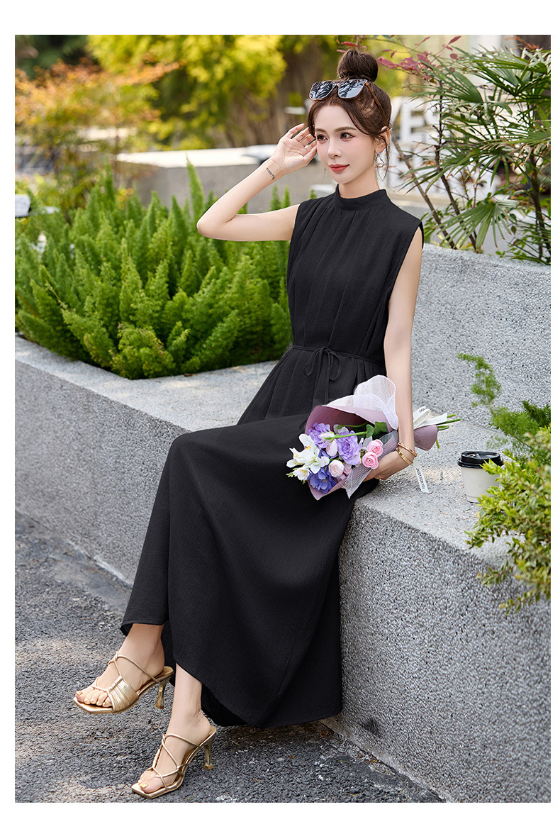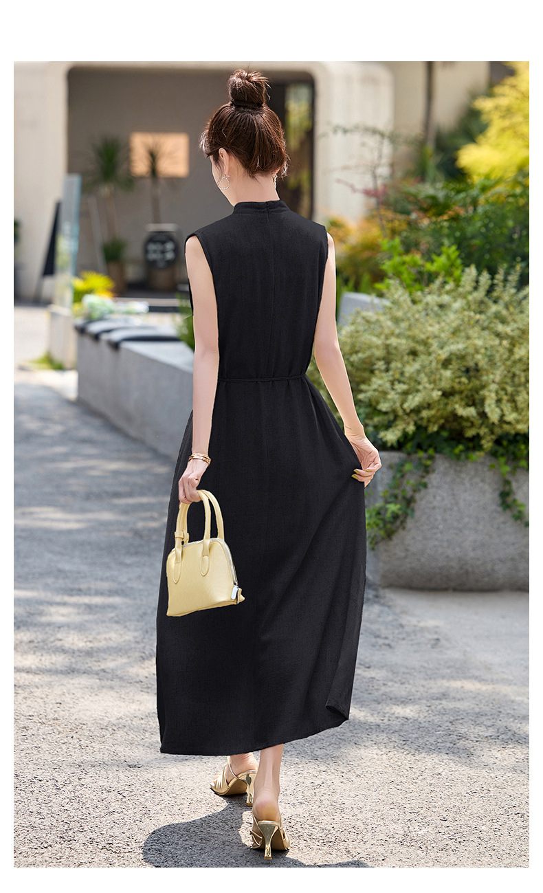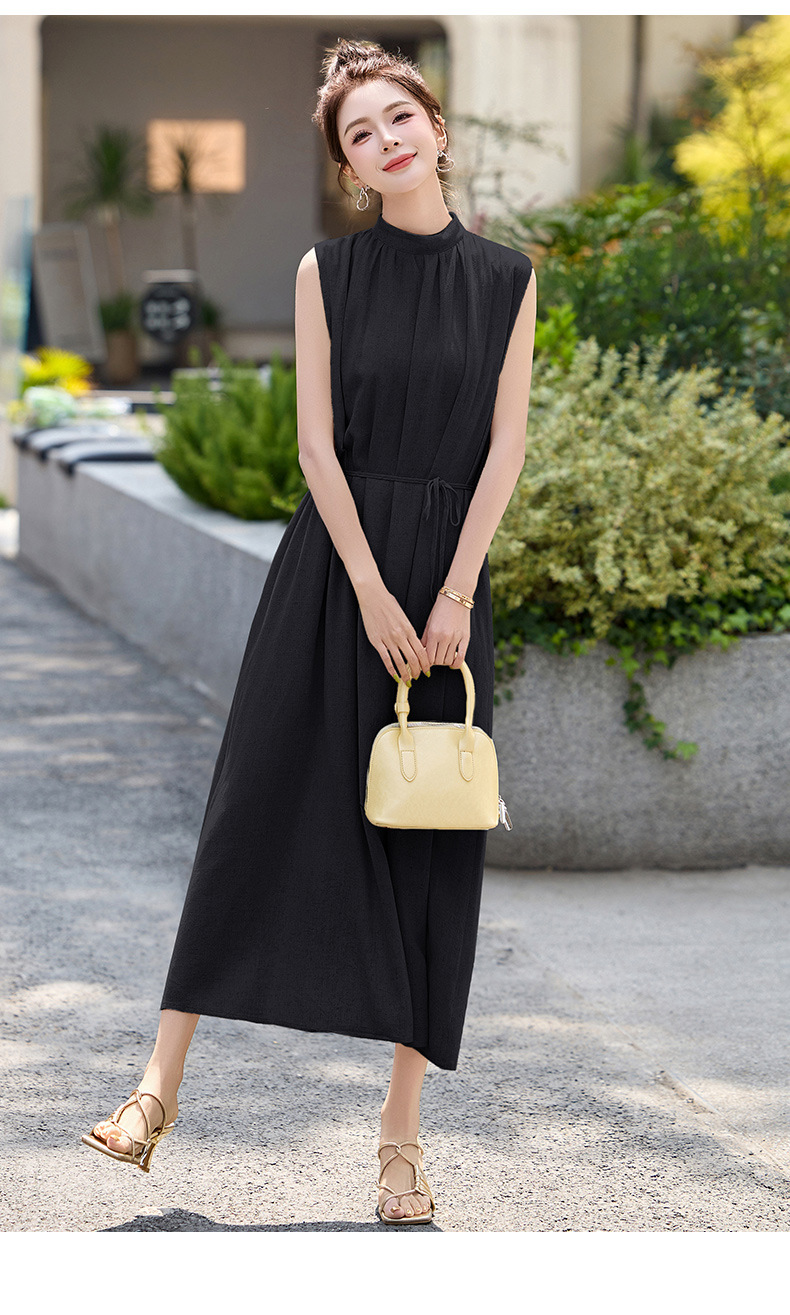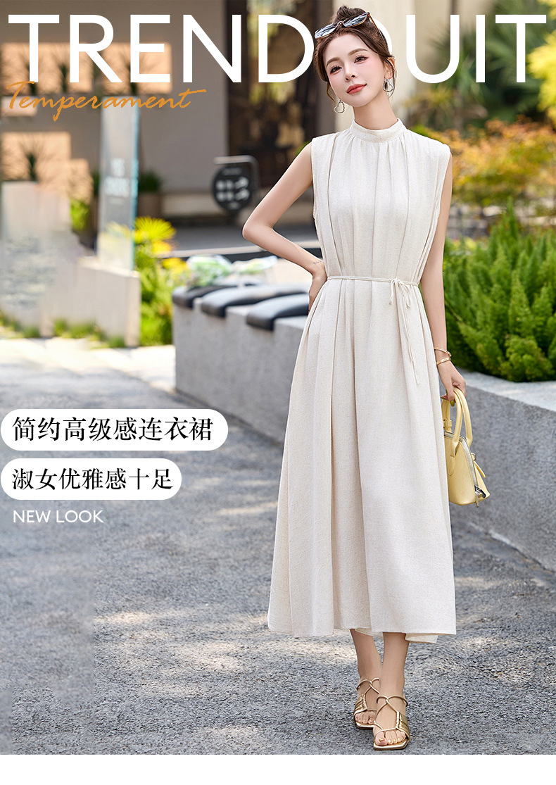 法式连衣裙2025夏季新款时尚优雅气质收腰显瘦简约中长款裙子 HR-MLJL61005