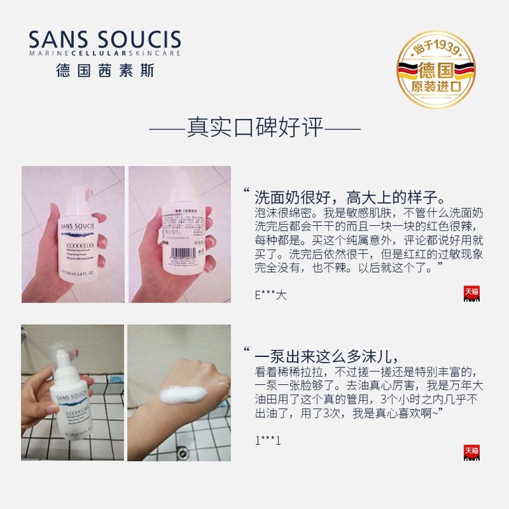 【一般贸易】茜素斯清颜洁面慕斯泡沫洗面奶,卸妆乳