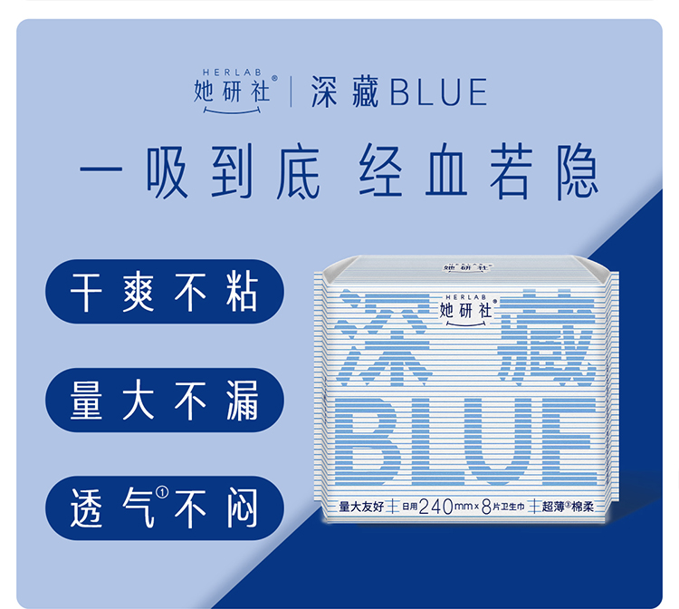 【10包74片】Herlab她研社卫生巾 深藏BLUE 限时日夜组合 A-3199