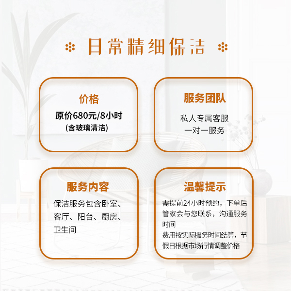 日常精细保洁4h+玻璃清洁4h