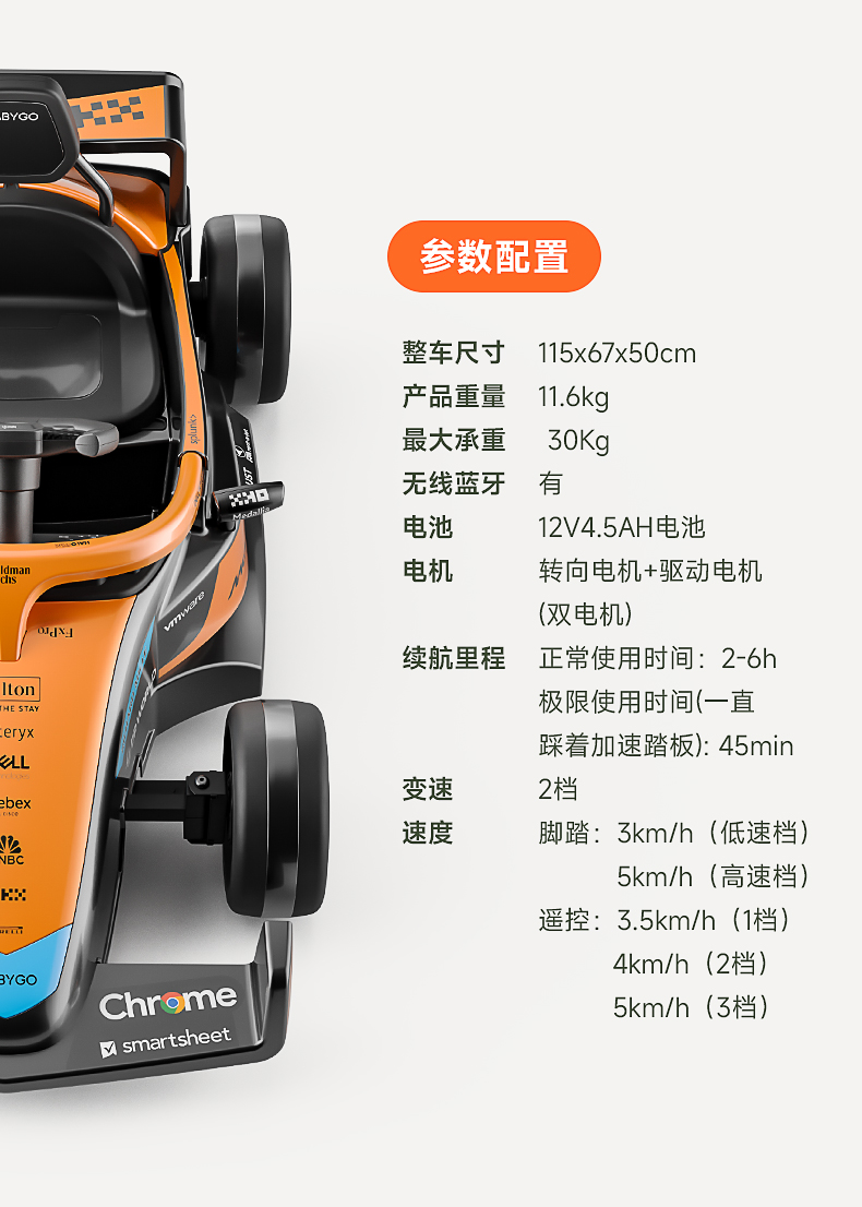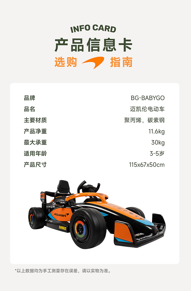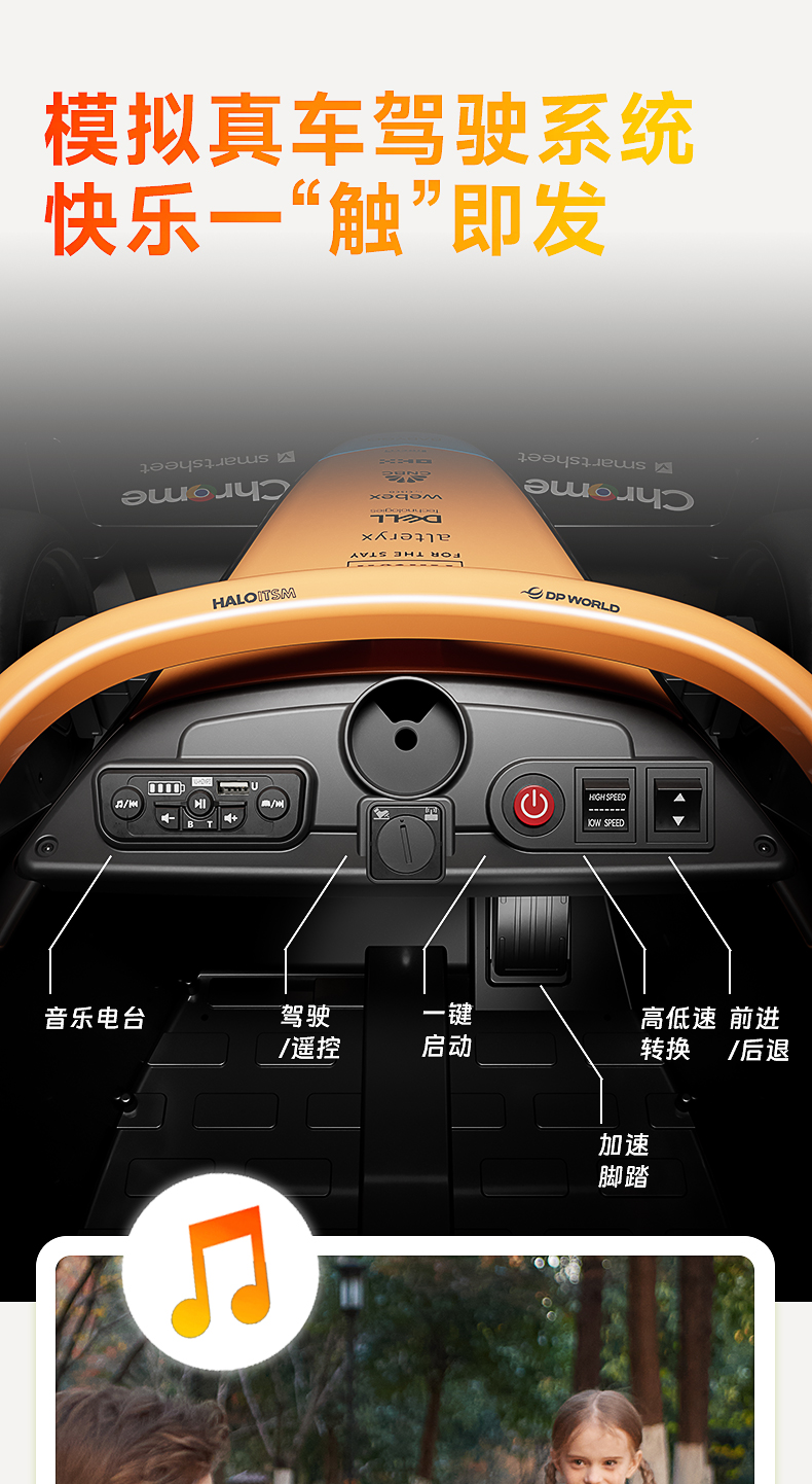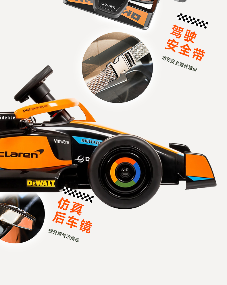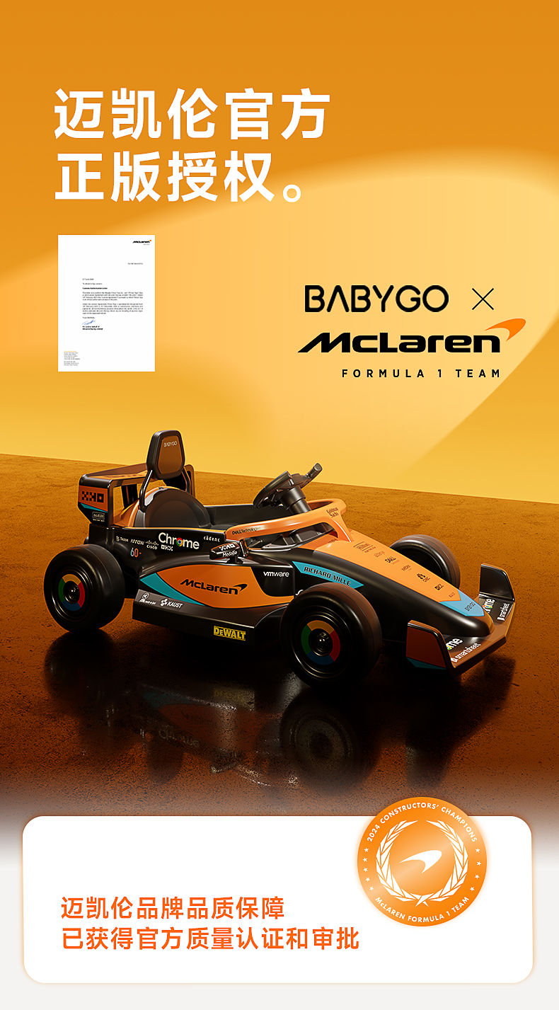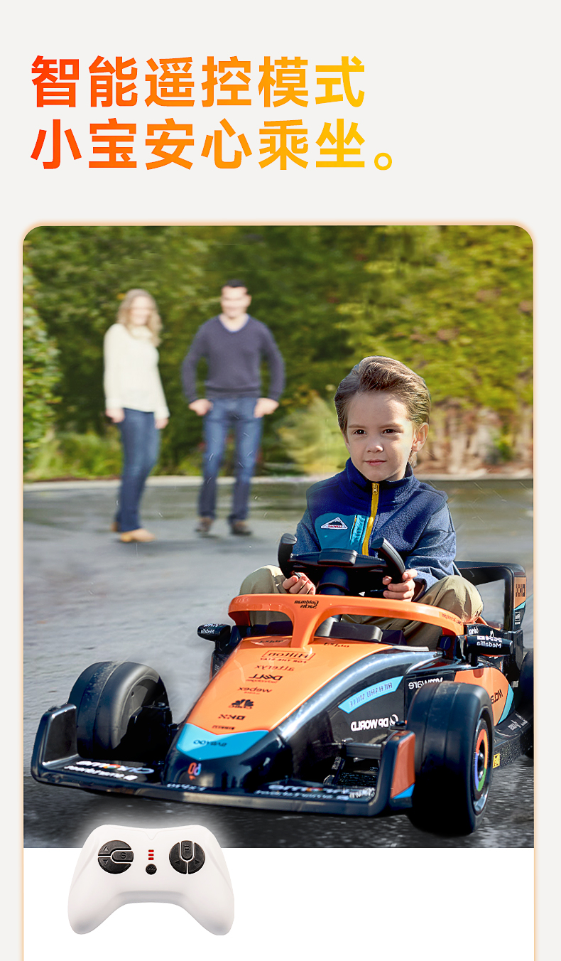 BABYGO迈凯伦儿童电动车卡丁车男女孩充电遥控玩具车
