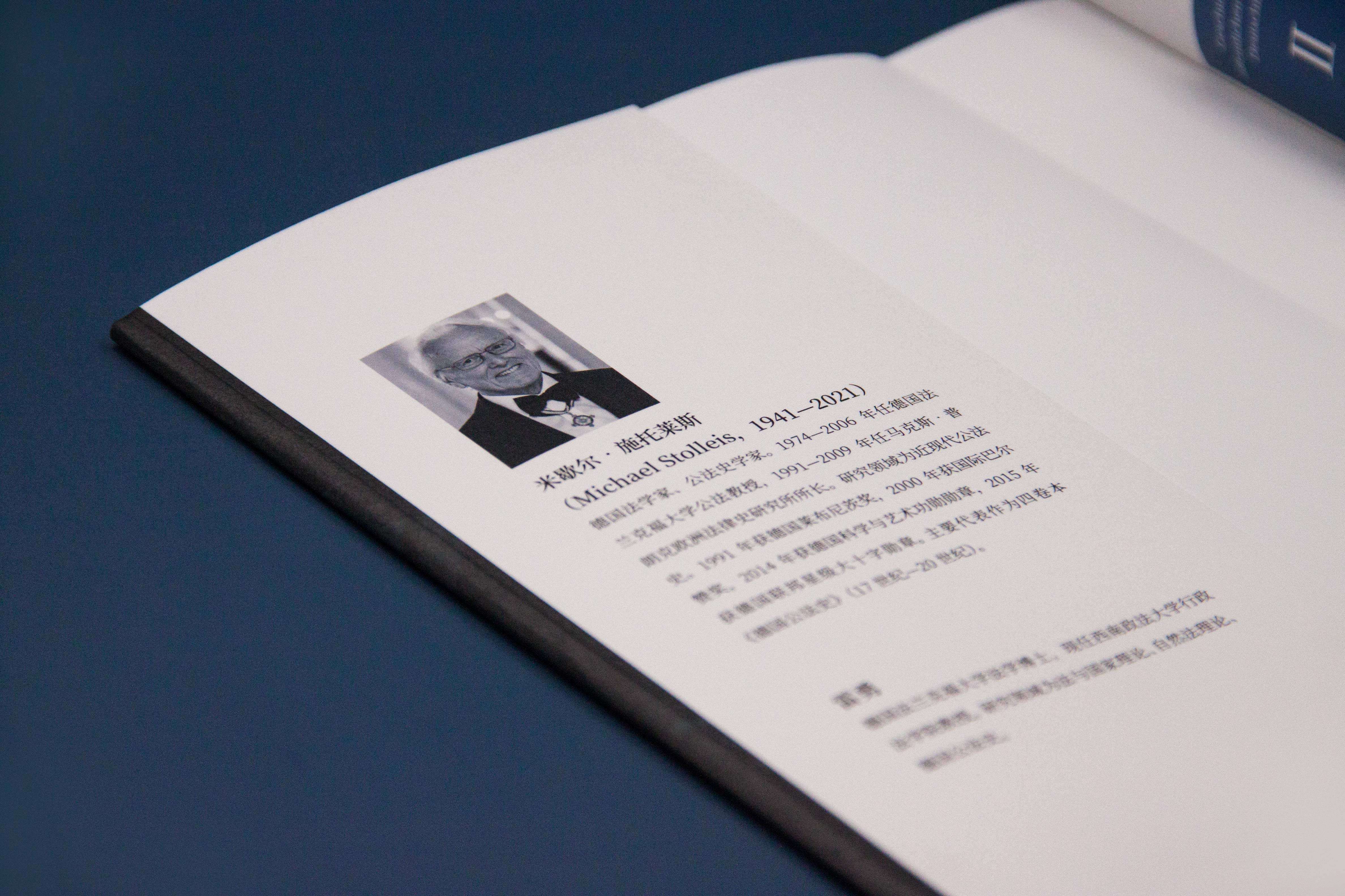 米歇尔·施托莱斯(Michael Stolleis,1941—2021),德国法学家、公法史学家。1974—2006年任德国法兰克福大学公法教授,1991—2009年任马克斯·普朗克欧洲法律史研究所所长。研究领域为近现代公法史。1991年获德国莱布尼茨奖,2000年获国际巴尔赞奖,2014年获德国科学与艺术功勋勋章,2015年获德国联邦星级大十字勋章。主要代表作为四卷本《德国公法史》(17世纪—20世纪)。
